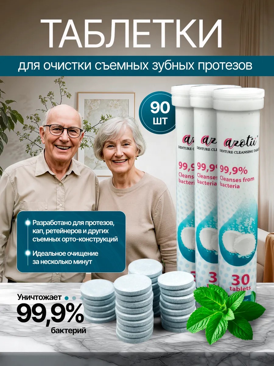 Таблетки для очищения съемных зубных протезов, кап, ретейнеров (90 штук).