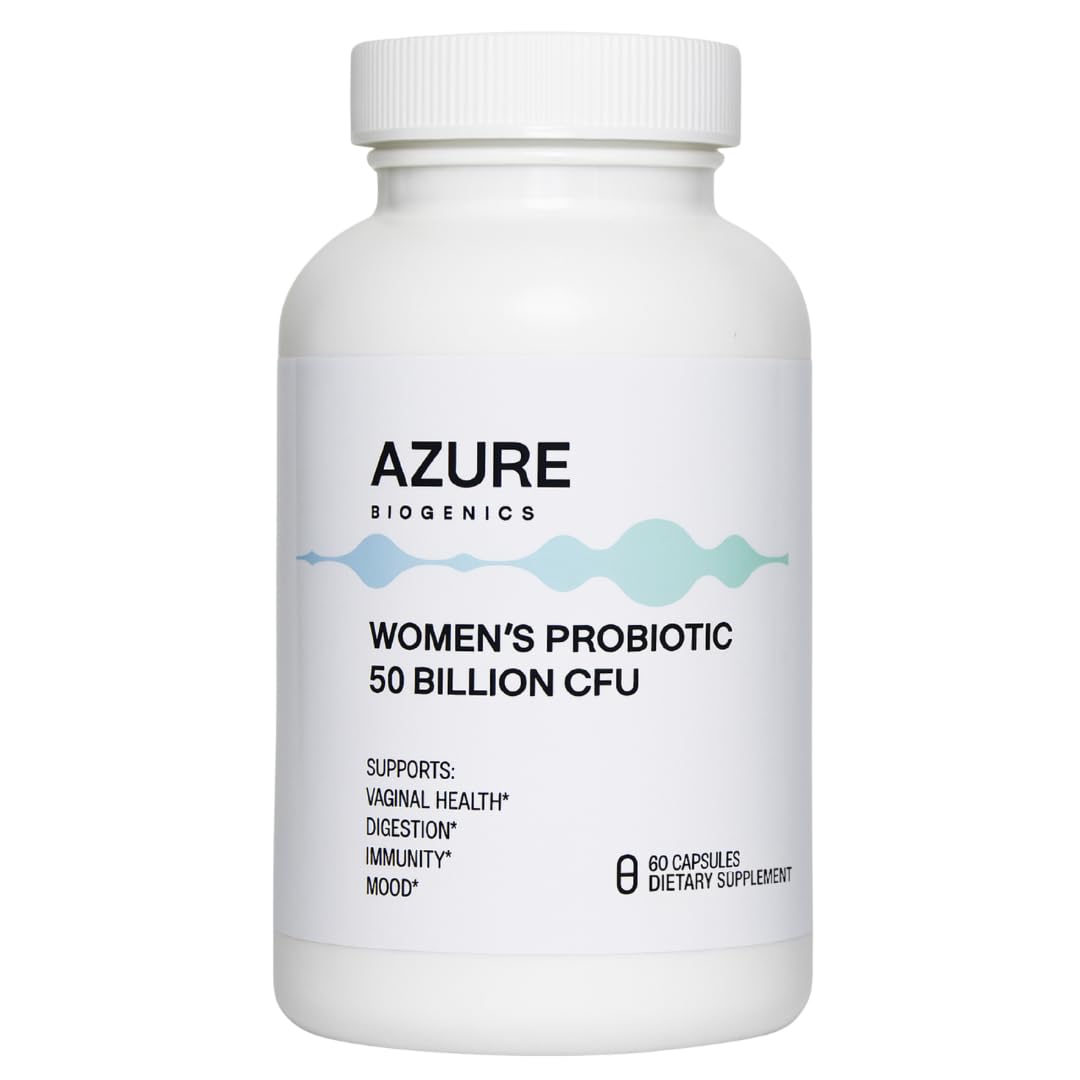Azure Biogenics Women's Probiotic 50 Billion CFU 4 Probiotic Strains 60 Capsules Digestion Vaginal Immune & Mood Health Support* Non-GMO Gluten-Free