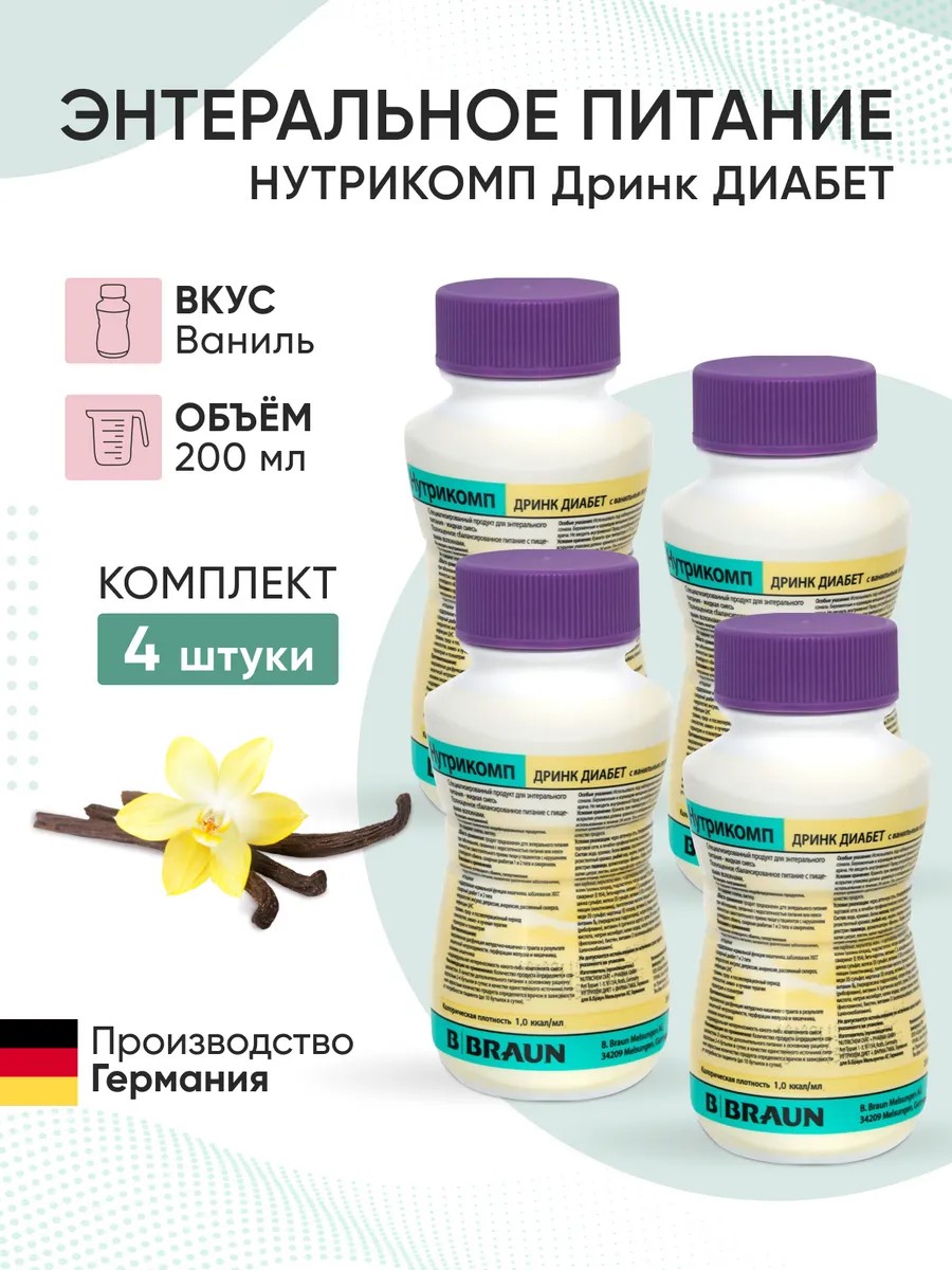 | Комплектация | Нутрикомп Дринк Диабет ванильный 200 мл. - 4 шт. |
