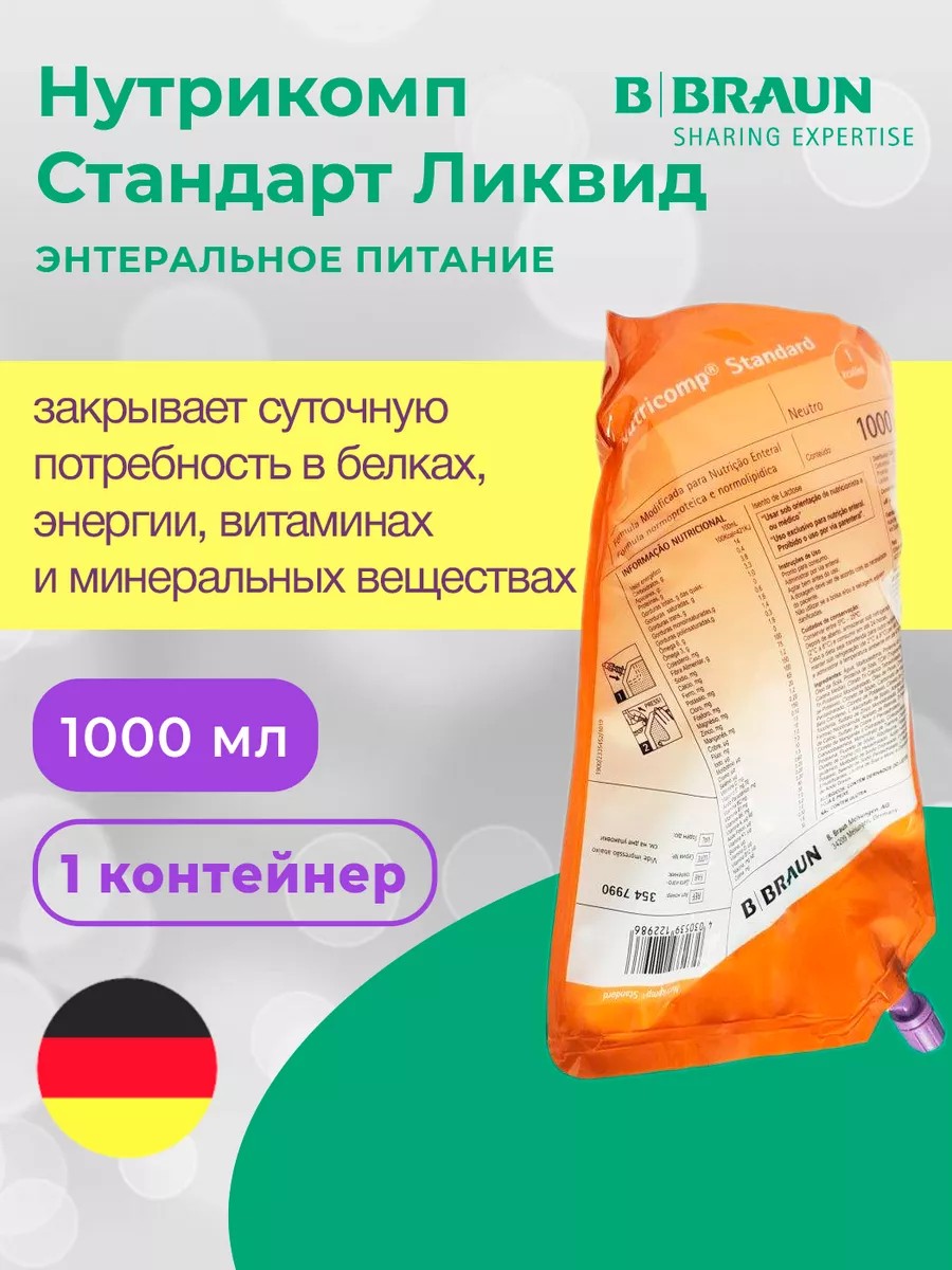 Нутрикомп Стандарт Ликвид, в контейнере, 1000 мл – жидкая смесь для энтерального и парентерального питания, обогащенная пищевыми волокнами, с энергетически насыщенным и сбалансированным составом. Готова к употреблению.