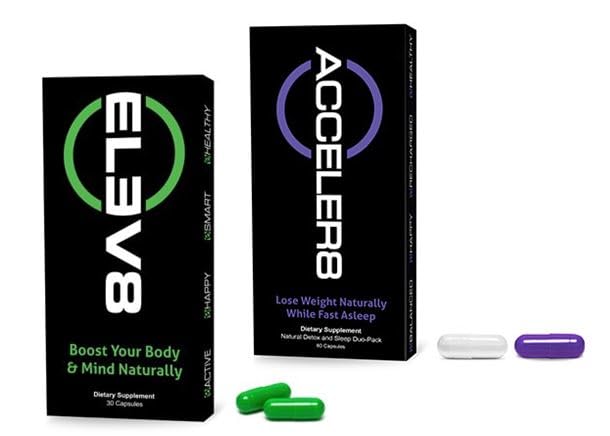 Acceler8 Restore - 30 Purple Capsules. Acceler8 Sleep - 30 White Capsules. Elev8 - 30 Green Capsules.