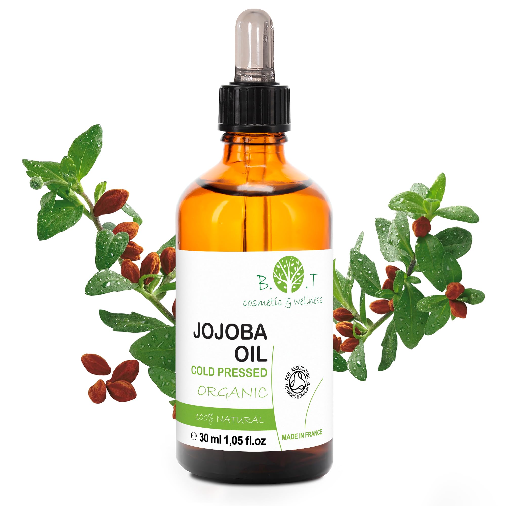 Anti-stretch mark body oil: Reduces and prevents pregnancy stretch marks. Improves the appearance of scars. Perfect for massages (carrier oil): Quick absorption, perfect texture, incredible glide, softening, and with a significant contribution to elasticity and firming. Natural hair treatment for beards and hair. Oil for dry and damaged hair. Add it to your usual shampoo or hair mask for shiny hair and to stimulate growth. For an intensive treatment, simply apply it to all of your hair and leave it on for 30 minutes. If you have curly hair, you will see improved curl definition. Ideal for sensitive and atopic skin. Reduces redness and soothes skin irritations. Diminishes the appearance of wrinkles and fine lines thanks to its anti-aging properties. Add a small amount of jojoba oil to your facial cream or serum and you will be amazed by the results! Makeup Remover and Cleansing Oil - The magic makeup remover and cleanser for the eyes, which also promotes eyelash growth. Cleanses, removes makeup, and eliminates impurities in one step, leaving skin soft and supple. If you have dry lips, apply jojoba oil and leave it on overnight you'll see the difference! Oily skin with blemishes? Jojoba oil is the solution! Thanks to its ability to regulate sebum and minimize pores, it helps fight pimples, blackheads, and imperfections without clogging pores. A true gem for clear, radiant skin!Huile de Jojoba Pure Bio Huile Visage Huile de Massage Huile Demaquillant Visage Huile Cheveux Huile Vergeture Grossesse Huile Corps Huile Barbe - 30 mlHuile corporelle anti-vergetures : Réduit et prévient les vergetures de la grossesse. Améliore l'apparence des cicatrices. Parfait pour les massages (huile porteuse) : Absorption rapide, texture parfaite, glisse incroyable, adoucissante et avec une GRANDE contribution à l'élasticité et à l'effet raffermissant. Traitement capillaire naturel pour la barbe et les cheveux. Huile cheveux secs et abimés. Ajoutez-le à votre shampooing habituel ou à votre masque pour des cheveux éclatants et pour stimuler la croissance. Pour un traitement intensif, il suffit de l'appliquer sur l'ensemble des cheveux et de le laisser agir pendant 30 minutes. Si vous avez les cheveux bouclés, vous verrez une amélioration de la définition des boucles. Idéal pour les peaux sensibles et atopiques. Réduit les rougeurs et apaise les irritations de la peau. Atténue l'apparence des rides et des ridules grâce à ses propriétés anti-âge. Ajoutez une petite quantité d'huile de jojoba à votre crème ou sérum facial et vous serez surpris par les résultats !. Huile Demaquillant et Nettoyant - Le démaquillant et nettoyant magique pour les yeux, en plus de favoriser la croissance des cils. Nettoie, élimine le maquillage et élimine les impuretés en un seul geste, laissant la peau douce et souple. Si tu as les lèvres sèches, applique de l'huile de jojoba et laisse agir toute la nuit, tu verras la différence !. Peau grasse avec des imperfections ? L'huile de jojoba est la solution ! Grâce à sa capacité à réguler le sébum et à réduire les pores, elle aide à combattre les boutons, les points noirs et les imperfections sans obstruer les pores. Une vraie pépite pour une peau nette et éclatante !.