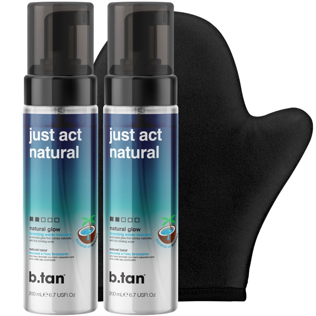 b.tan Clear Self Tanner Bronzing Water Duo Bundle | Just Act Natural - Best 1 Hour Express Sunless Tanning Mousses with Mitt Applicator Transfer-Free Enriched With Coconut Water & Vitamin E No Smel