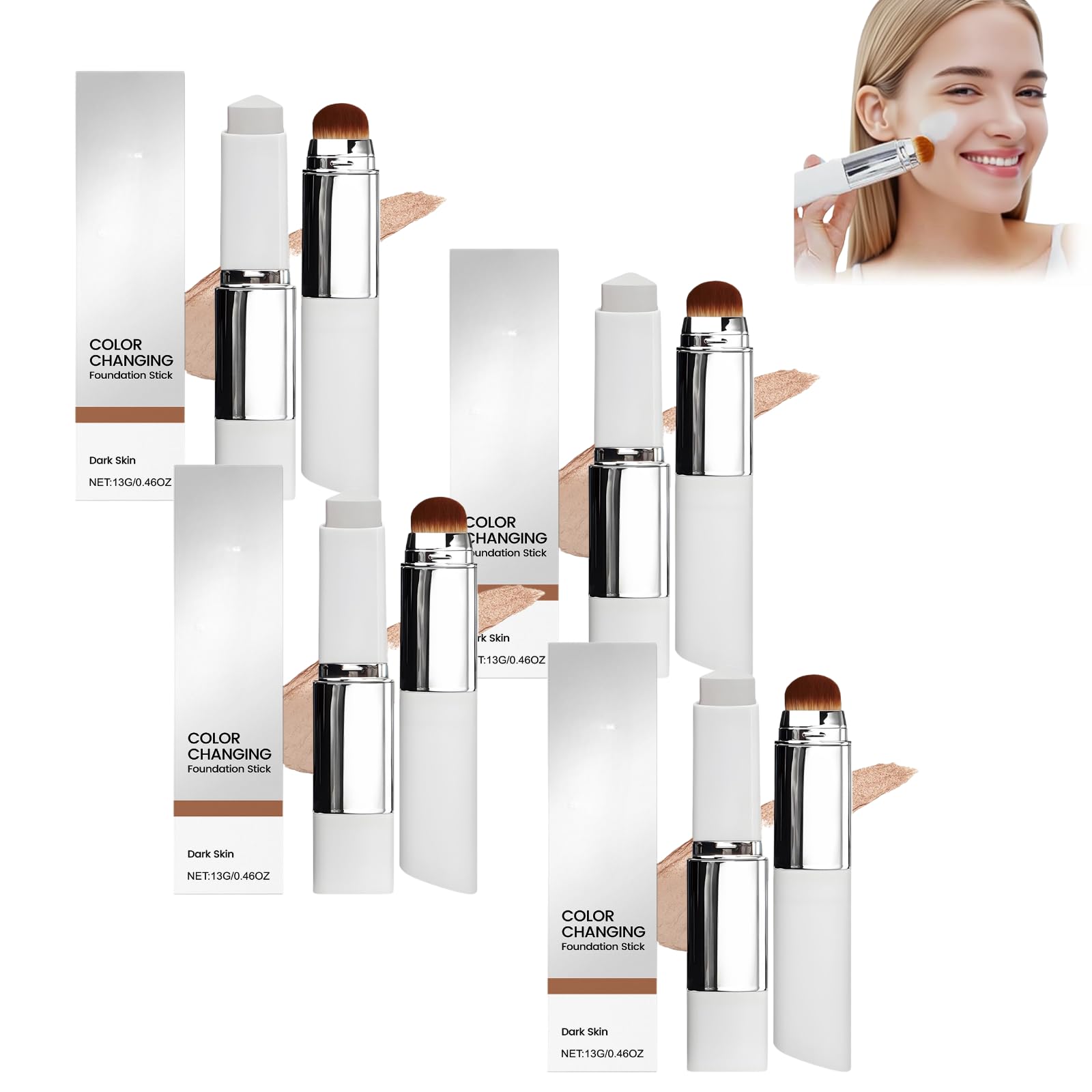Bâton de fond de teint hydratant éclaircissant changeant de couleur, couverture naturelle légère effet correcteur, bâton de maquillage hydratant longue tenue pour visage et yeux (DARK 4PCS)
