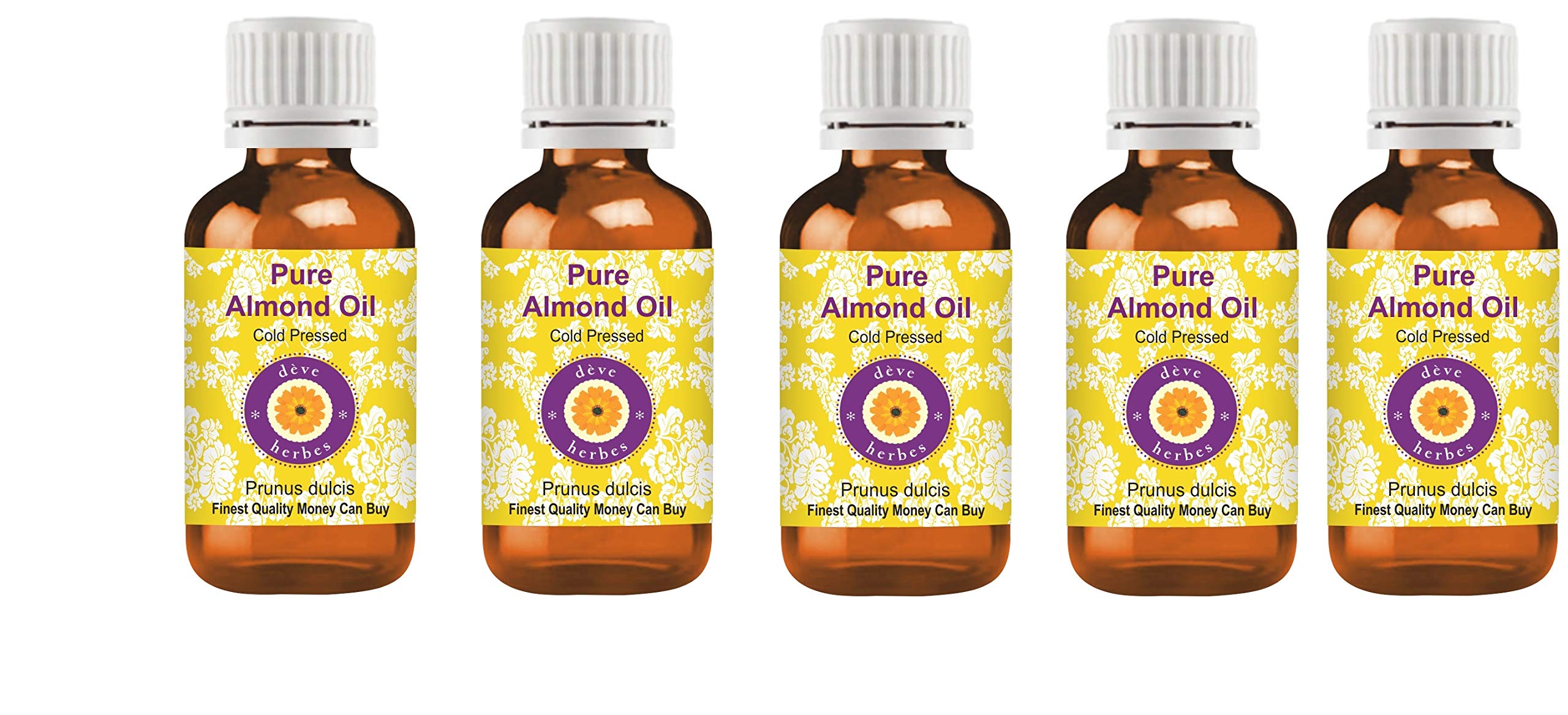B07MQZM3N3 Deve Herbes Pure Almond Oil Prunus dulcis 100 Natural Therapeutic Quality Cold Pressed Pack of Five 5 x 100 ml