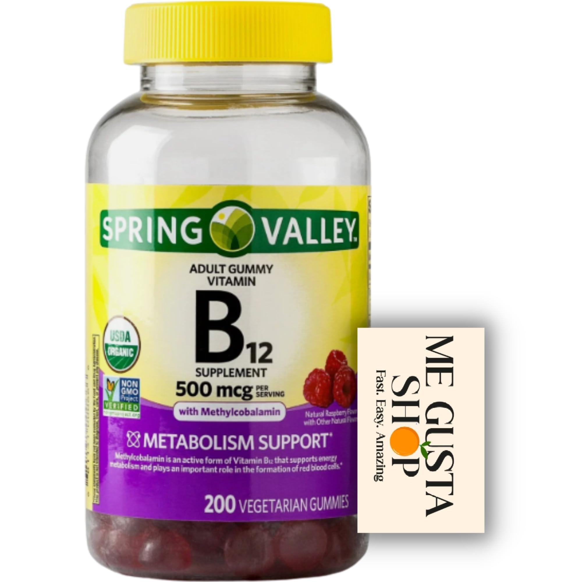 B12 500 mcg Spring Vallley Raspberry Flavor Gummy Vitamin B12 Gummies 200 ct (Pack of 1) + me Gusta Sticker