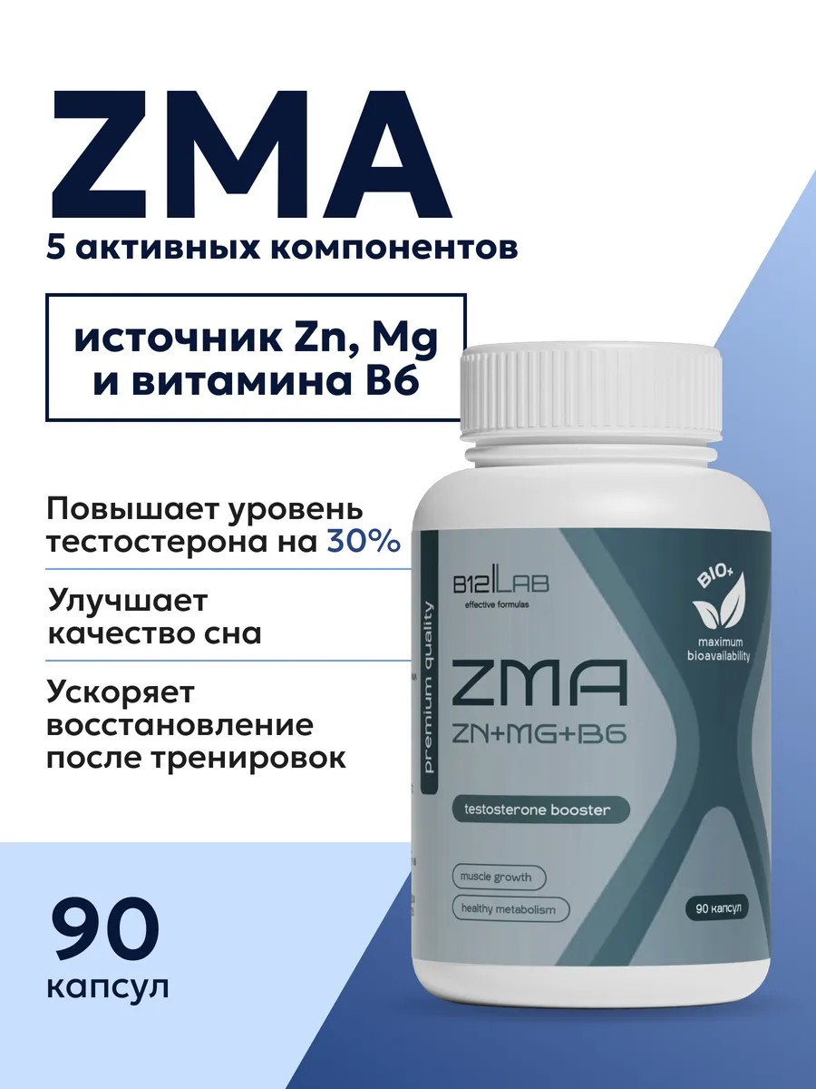 Эффективный комплекс цинка, магния и витамина B6 для мужского здоровья и спортивных результатов. Мощная формула для повышения тестостерона и энергии. Увеличения мышечной массы и силы. Восстановления после тренировок. Поддержка сердца и иммунитета. Форма: капсулы. Объем: 90 порций (месяц приема). Дозировка: 3 капсулы в день (цинка хелат – 25мг, магний – 400мг, Б6 – 6 мг). Премиум-качество от брендового производителя. Натуральный минеральный набор. Антиоксидантный эффект для защиты клеток. Оптимальная доза для взрослых, занимающихся спортом. Улучшение работы нервной системы. Аспарагиновая кислота 50 мг в составе усиливает усвоение микроэлементов. Буст для выносливости и полезные свойства для группы мышц. ZMA – лучшее средство для фитнеса, роста мышц и общего здоровья человека. Курс приема 30 дней. Пищевая добавка premium -класса. Можно купить на Wildberries Биодобавка ЗМА в таблетках – это набор трех минералов (zinc, магнезиум 400 mg и B6) для мужчин и спортсменов против стресса, с акцентом на силу тела и выносливость.