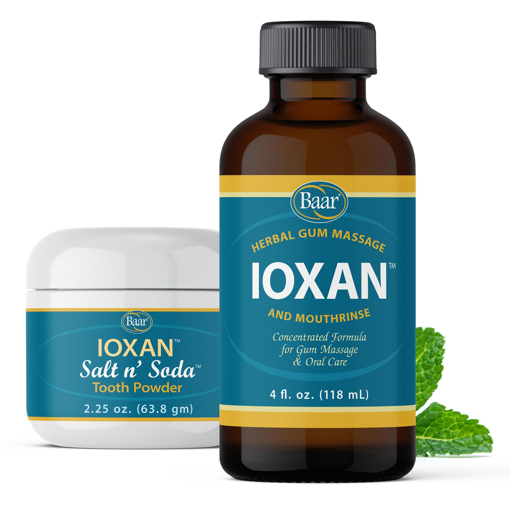 Baar Salt N' Soda Toothpowder 2.25 oz. & Ioxan Gum Massage Oral Care 4 oz. Bundle