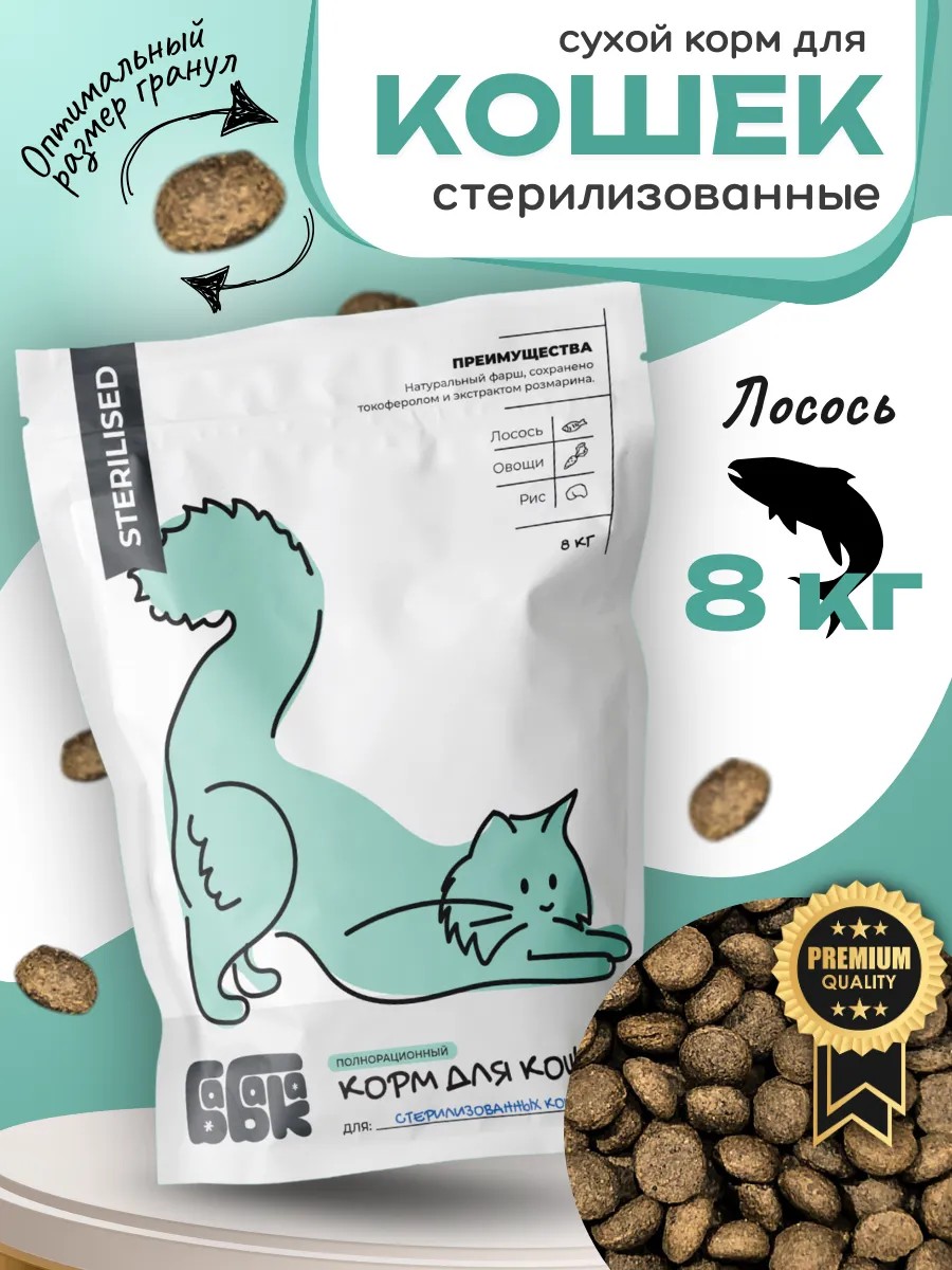 Бабака Сухой корм для стерилизованных кошек с лососем 8 кг