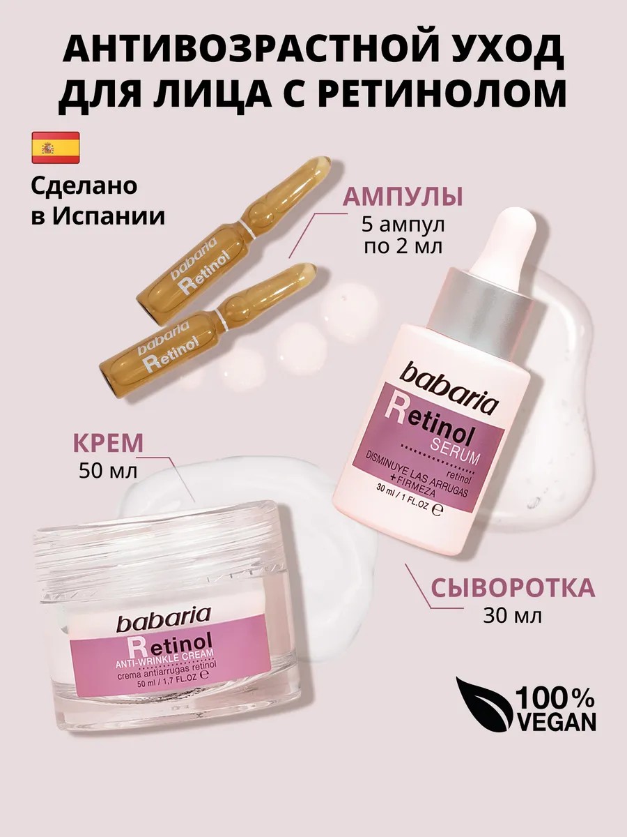 Babaria Набор для лица с ретинолом ампулы, сыворотка и крем