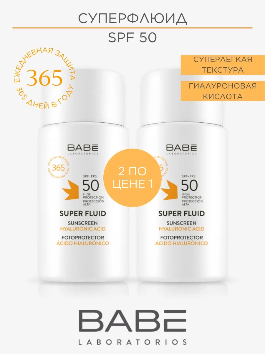 BABE LABORATORIOS Солнцезащитный крем флюид для лица SPF 50 1+1 в подарок