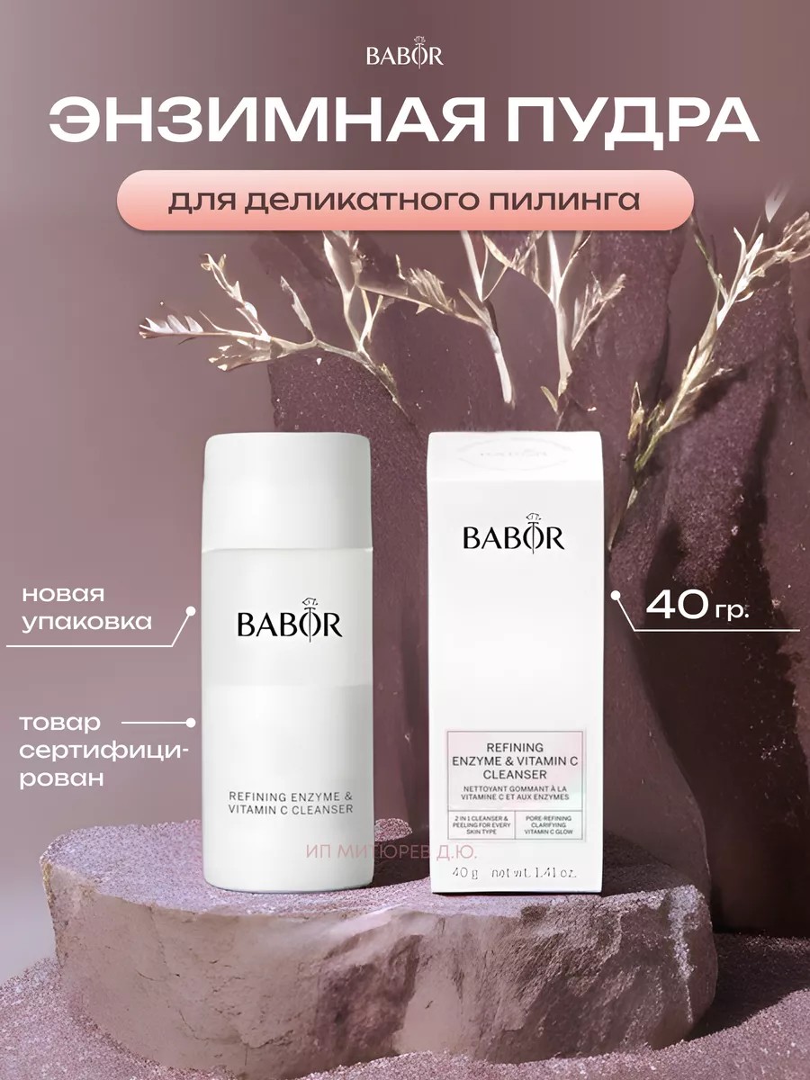 NEW BABOR Refining Enzyme & Vitamin C Cleanser. A best-selling cleanser with maximum economical use. A finely dispersed powder with vitamin C and enzymes for cleansing and exfoliating all skin types. Evens skin tone. Restores freshness and radiance. Prevents premature skin aging caused by free radicals. Result: eliminates oily shine, effectively whitens skin, lightens age spots, evens out skin texture, leaves skin flawlessly clean and radiant, with an even tone and small pores. This enzyme powder is designed to deeply cleanse the skin of excess sebum, dead cells, dust, and makeup residue. Its delicate texture does not damage the skin, leaving it feeling clean and comfortable. Babor Enzyme Cleanser. A finely dispersed powder with vitamin C and enzymes for cleansing and exfoliating all skin types. Evens skin tone, restores freshness and radiance, and prevents premature aging caused by free radicals. The result: flawlessly clean, radiant skin, an even tone, and smaller pores. When lathered with water, it provides intensive yet gentle cleansing. It revitalizes the skin with a gentle exfoliating effect. It intensively cleanses, stimulating skin regeneration and renewal. Dispense the required amount of loose powder into the palm of your hand and lather with water until it forms a mousse-like consistency. Apply thoroughly to the face, neck, and décolleté. Rinse with plenty of water. Enzyme Powder can be used as a course, for example, for one week as a daily cleanser. In this case, we recommend using the Enzyme Powder in the morning and choosing a different product, such as Hydrophilic Oil, in the evening, as the Enzyme Powder is not suitable for makeup removal. Using Enzyme Powder loose in a course is especially beneficial for skin prone to unevenness, breakouts, or pigmentation. As a gentle exfoliant, use Enzyme Powder 1-2 times a week. Suitable for sensitive skin.