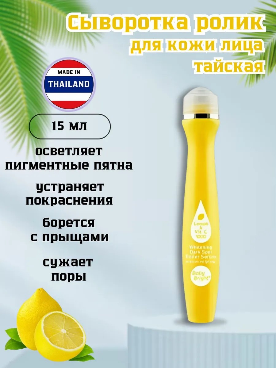 Сыворотка для лица - это тайская уходовая косметика с лимоном и витамином С, предназначенная для осветления пигментных пятен, шрамов, постакне, следов от высыпаний и купероза. Сыворотка для лица от прыщей устраняет недостатки в виде тёмных пятен, возникающих на месте прыщиков и акне, сужает поры. Сыворотка для лица увлажняющая с гиалуроновой кислотой и коллагеном устраняет покраснение кожи и делает тон кожи ровным и красивым. Роллер для лица, в котором содержится увлажняющая сыворотка, разработан для массажа и улучшения кровообращения в эпидермисе. Сыворотка тайская освежает, витаминизирует и увлажняет кожу, отшелушивает поврежденные клетки дермы, уменьшает тусклость, возвращает коже яркость. Сыворотка для сужения пор из Тайланда убирает покраснение, устраняет недостатки кожи и сужает поры а также повышает тонус кожи.