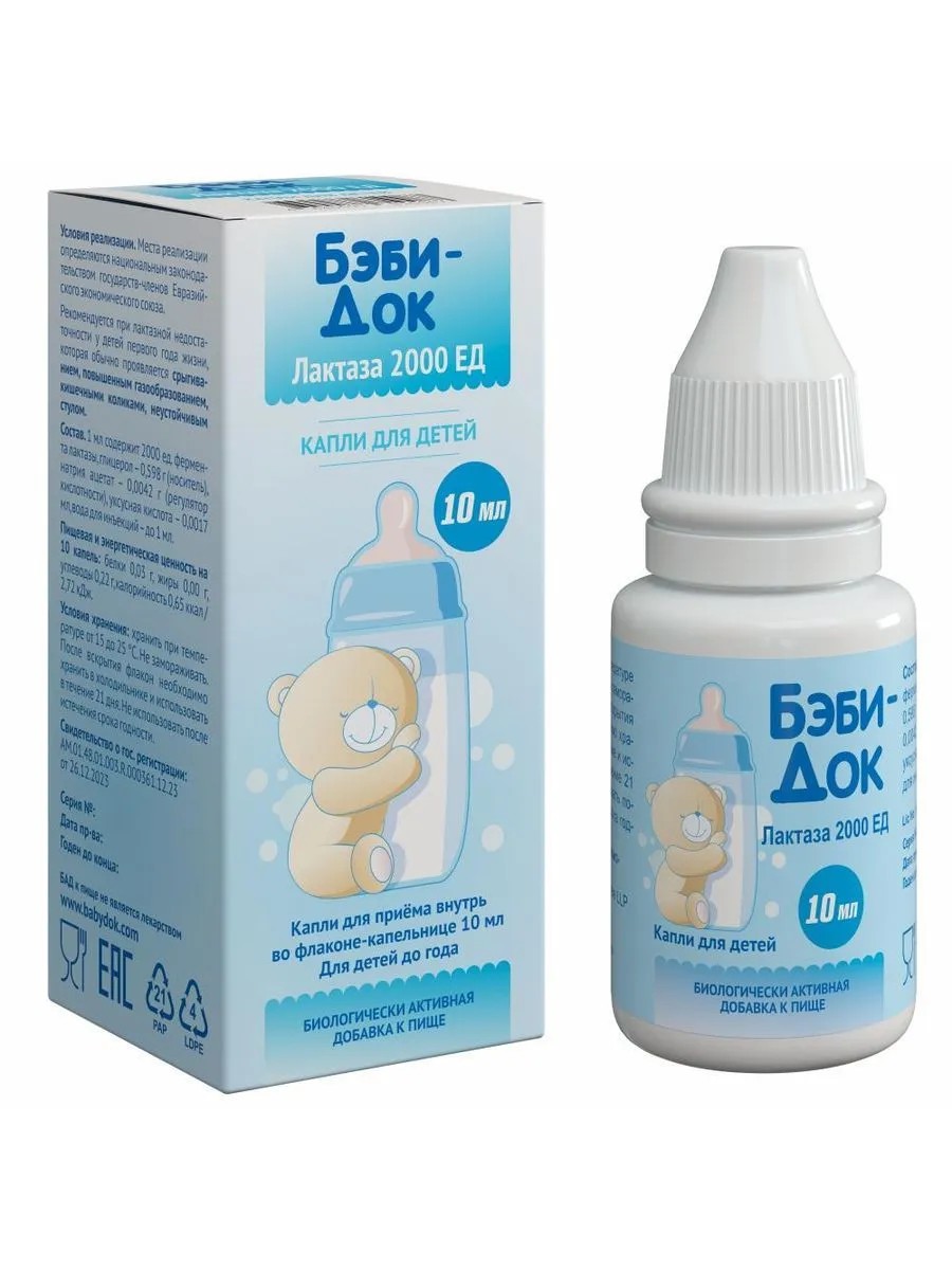 бэби-док лактаза 2000 ед 10мл флак/кап капли д/приема внутрь. источник фермента лактазы. в качестве биологически активной добавки к пище. фермент лактаза, глицерол, натрия ацетат, уксусная кислота, вода для инъекций. бэби-док лактаза 2000 ед» («baby-dok») рекомендуется в качестве биологически активной добавки к пище - источника фермента лактазы при транзиторной лактазной недостаточности у детей первого года жизни. тр тс 021/2011 тр тс 022/2011 тр тс 029/2012 -