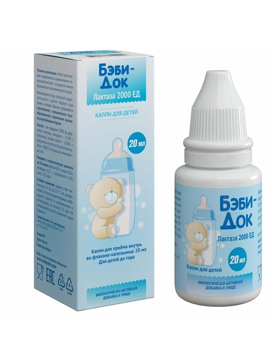 бэби-док лактаза 2000 ед 20мл флак/кап капли д/приема внутрь. источник фермента лактазы. в качестве биологически активной добавки к пище. фермент лактаза, глицерол, натрия ацетат, уксусная кислота, вода для инъекций. бэби-док лактаза 2000 ед» («baby-dok») рекомендуется в качестве биологически активной добавки к пище - источника фермента лактазы при транзиторной лактазной недостаточности у детей первого года жизни. тр тс 021/2011 тр тс 022/2011 тр тс 029/2012 -