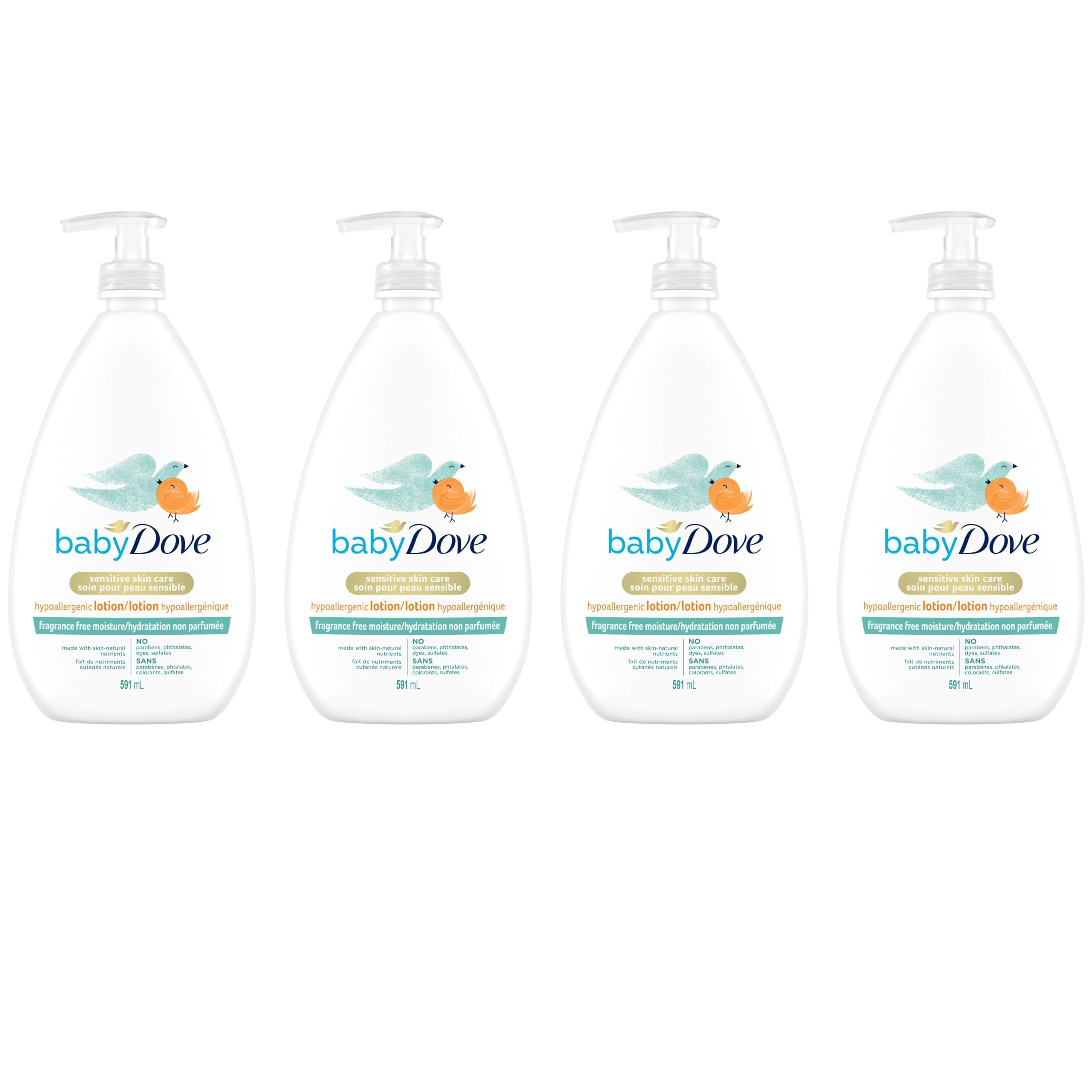 Baby Dove Baby Lotion for sensitive skin care Fragrance Free Moisture hypoallergenic body lotion 591ml (Pack of 4) 591 ml (Pack of 4)