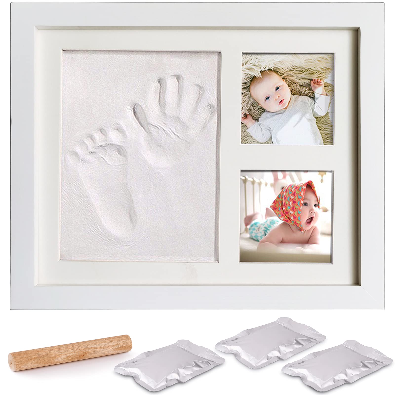 Baby hand and footprint, amayga wood-baby photo frame with plasterprint, hand and foot plaster print set, footprint set, footprint gifts for babies, newborn memories forever ✓ The baby handprint and footprint holds a 12x 16cm (4.72 x 6.30 inches) Impressions & two 7 x 7 cm (2.75 x 2.75 inches) Photo.✓ Personalized Decoration: This picture frame is not only a wonderful gift for the whole family, but also a decorative home accessory.So this personal memory can always serve as an eye -catcher, hang on the wall or prefer to put it on the desk.✓ Safety for your baby: picture frame frames are made of natural wood, has no smell. The plaster print is completely non -toxic and can be used without hesitation.Do you have full trust!.✓ High quality: The baby picture frame is painted from the front and back white, the passe -partout offers space for two pictures, as well as for the mass made of clay for the baby handprints and footprints.Including small rolling wood to roll out the impression set.✓ The best gift for newborns: we cannot stop your little angel from growing up, but we can help you create a memory of your delightful handprint and footprint to appreciate for a lifetime. Baby-Hand- und Fußabdruck, Amayga Holz-Baby-Fotorahmen mit Gipsabdruck, Hand- und Fuß-Gipsabdruck-Set, Fußabdruck-Set, Fußabdruck-Geschenke für Babys, Neugeborene Erinnerungen für immer✓ Die Baby Handabdruck und Fußabdruck hält eine 12 x 16cm(4.72 x 6.30 Zoll) Impressionen & zwei 7 x 7 cm(2.75 x 2.75 Zoll) Foto. ✓ PERSONALIZED DECORATION:Dieser Bilderrahmen ist nicht nur ein wunderbares Geschenk für die ganze Familie, sondern auch ein dekoratives Wohnaccessoire. So kann dieses persönliche Andenken immer als Blickfang dienen,An die Wand hängen oder lieber auf den Schreibtisch stellen. ✓ SICHERHEIT FÜR IHR BABY:Bilderrahmen Rahmen sind aus natürlichem Holz, hat keinen Geruch.Der Gipsabdruck ist völlig ungiftig und kann ohne Bedenken eingesetzt werden. Haben Sie volles Vertrauen!. ✓ HOCHWERTIGE:Der Baby Bilderrahmen ist von vorne und hinten weiß lackiert, das Passepartout bietet Platz fu¨r zwei Bilder, sowie fu¨r die Masse aus Lehm fu¨r die Baby Handabdrücke und Fußabdru¨cke. Inklusive kleinem Nudelholz zum ausrollen des Abdruckset. ✓ DAS BESTE GESCHENK FÜR NEUGEBORENE: Wir können Ihren kleinen Engel nicht vom Erwachsenwerden stoppen, aber wir können Ihnen helfen, ein Andenken ihres entzückenden Handabdrucks und Fußabdrucks zu schaffen, um ein Leben lang zu schätzen.Baby Handabdruck und Fußabdruck,AMAYGA Baby Holz Bilderrahmen mit Gipsabdruck, Hand und Fuß Gipsabdruck Set Abdruckset Fussabdruck-Geschenken für Babys,Neugeborene-Erinnerungen für die Ewigkeit