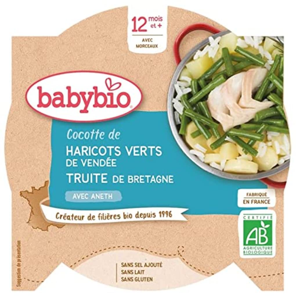 Organic recipe with pieces of vegetables and trout, suitable for children from 12 months. Plate of 230 g. - Without added salt - Without binding agents - Without preservatives in accordance with regulations. Ingredients: Vegetables 63 (prince beans 21 , potatoes 19 , parsnips 18 , onions), cooking liquid, TROUT (fish) 8 , rice 3.5 , lemon juice, dill organic (FR-BIO-01) Nutritional value per 100 grams: Energy 210 kJ 50 kcal Fat 1 gram - of which saturated 0.23 gram Carbohydrates 7 grams - of which sugars 0.2 grams. Fiber 1.6 grams. Proteins 2.4 grams. Salt 0.03 grams. Sodium 10.6 grams. Preparation: Do not place in the regular oven. - Au bain-marie: Immerse the plate in boiling water for about 5 minutes. Rinse with cold water, wait a moment and then remove the lid. - For a quick preparation time: pierce a few holes in the lid of the plate and heat for about 1 minute on medium power. Serve lukewarm. Do not add salt. Always mix well and check the temperature before feeding your baby. The resealed jar can be kept in the refrigerator for 48 hours. Manufacturer: Vitagermine 7 Rue de Pre Meunier F-33612 Cestas France. Vegetables 63 (prince beans 21 , potatoes 19 , parsnips 18 , onions), cooking liquid, TROUT (fish) 8 , rice 3.5 , lemon juice, dill INGREDIENTS Vegetables 63 (prince beans 21 , potatoes 19 , parsnips 18 , onions), cooking liquid, TROUT (fish) 8 , rice 3.5 , lemon juice, dill INSTRUCTIONS FOR USE Heat before consumption. BOX CONTENTS: Mon Petit Plat Trout Vegetables See moreIngredients: Vegetables 63 (beans 21 , potatoes 19 , parsnips 18 , onions), cooking liquid, TROUT (fish) 8 , rice 3.5 , lemon juice, dill. Contents: 200 grams. Contents: 2 pieces.Babybio Mon Petit Plat Forel Groenten, 0.23kg, 2 Stuk, 2 Units Biologisch recept met stukjes groenten en forel, geschikt voor kinderen vanaf 12 maanden Bordje van 230 g. - Zonder toegevoegd zout - Zonder bindmiddelen - Zonder bewaarmiddelen in overeenstemming met de reglementering. Ingroodienten: Groenten 63 (prinsessenbonen 21 , aardappelen 19 , pastinaak 18 , uien), kookvocht, FOREL (vis) 8 , rijst 3,5 , citroensap, dille biologisch (FR-BIO-01) Voedingswaarde per 100 gram: Energie 210 kJ 50 kcal Vet 1 gram -waarvan verzadigd 0.23 gram Koolhydraten 7 gram -waarvan suikers 0.2 gram Vezels 1.6 gram Eiwitten 2,4 gram Zout 0.03 gram Natrium 10,6 gram. Bereiding: Niet in de gewone oven plaatsen. - Au bain-marie: Dompel het bordje ongeveer 5 minuten in kokend water. Afspoelen met koud water, even wachten en dan het deksel afhalen. - Voor een snelle bereidingstijd: prik enkele gaatjes in het deksel van het bordje en verwarm ongeveer 1 minuut op gemiddeld vermogen. Lauw opdienen. Geen zout toevoegen. Steeds goed mengen en de temperatuur controleren voor u baby voedt. Het opnieuw gesloten potje kan 48 u in de koelkast worden bewaard. Fabrikant: Vitagermine 7 Rue de Pre Meunier F-33612 Cestas Frankrijk.Groenten 63 (prinsessenbonen 21 , aardappelen 19 , pastinaak 18 , uien), kookvocht, FOREL (vis) 8 , rijst 3,5 , citroensap, dille INGREDIËNTEN Groenten 63 (prinsessenbonen 21 , aardappelen 19 , pastinaak 18 , uien), kookvocht, FOREL (vis) 8 , rijst 3,5 , citroensap, dille GEBRUIKSAANWIJZING Verwarm voor consumptie. INHOUD DOOS: Mon Petit Plat Forel Groenten Meer bekijkenIngroodienten: Groenten 63 (prinsessenbonen 21 , aardappelen 19 , pastinaak 18 , uien), kookvocht, FOREL (vis) 8 , rijst 3,5 , citroensap, dille. Inhoud: 200 gram. Inhoud: 2 stuks.