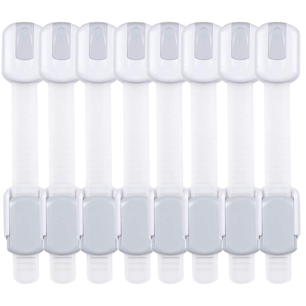 Child safety kid safety cabinet lock child proofing strap locks for baby safety lock,extra adhesive tape Included. No Drilling, Easy Installation. Toddlers is always full of curiosity so need much more safety protection. Feathers: [Necessity] Baby locks keep your toddler safe ,keep you relax and Keep your house clean and tidy: you need safety strap locks: KITCHEN (Cabinets,Drawers,Cupboard,Refrigerator, Freezer, Dishwasher, Microwave, Trash Can) LAUNDRY ROOM (Washer,Dryer,Laundry Hampers) BATHROOM (Cabinets,Shower Doors, Toilet Seat) BEDROOM (Drawers,Closets,Desks). [Use for] : Protect Child safety:These discreet universal baby safety cabinet locks secure cabinets, drawers, furniture, appliances, doors and much more to protect your child from harm while keeping your things organized and safe from curious little fingers ? [Easy install] :Adjust the cabinet lock straps length and locked then peel off the back of adhesive and press the child safety lock and finished [Material] Child safety lock flexible strap can be easily adjusted to different lengths. [Tips] Make sure the surface of furniture is clean and dry. Install the baby strap lock finished, don not pull the sticker within 24 hour. [WARNING] Child safety locks cabinet locks are not a substitute for adult supervision. Child safety lock package Included(box package) Color: Grey child safety lock baby proof 8pcs Baby Safety Locks 3pcs extra adhesive padsWhen you have any question for our child safety lock,please let me know,we will reply as soon as possible,Thank for your good decision!. Easy Adult Access and Adjustable Strap:Baby proofing child safety lock can adjust the length, easy for adult to open but difficult for toddlers. Child Proof Lock Tough and Durable:Child safety lock easy to install and use:Strong adhesive and come with extra pads in case you have to move them, NO tools and drilling for baby proof. Child Lock Multiple Application:Child safety lock use in cabinet door,drawers,cupboards,toilet,trash cans,oven,refrigerator door for child or pets proof at home. Child Safety Lock Necessity:Toddlers is always full of curiosity so need much more safety protection.