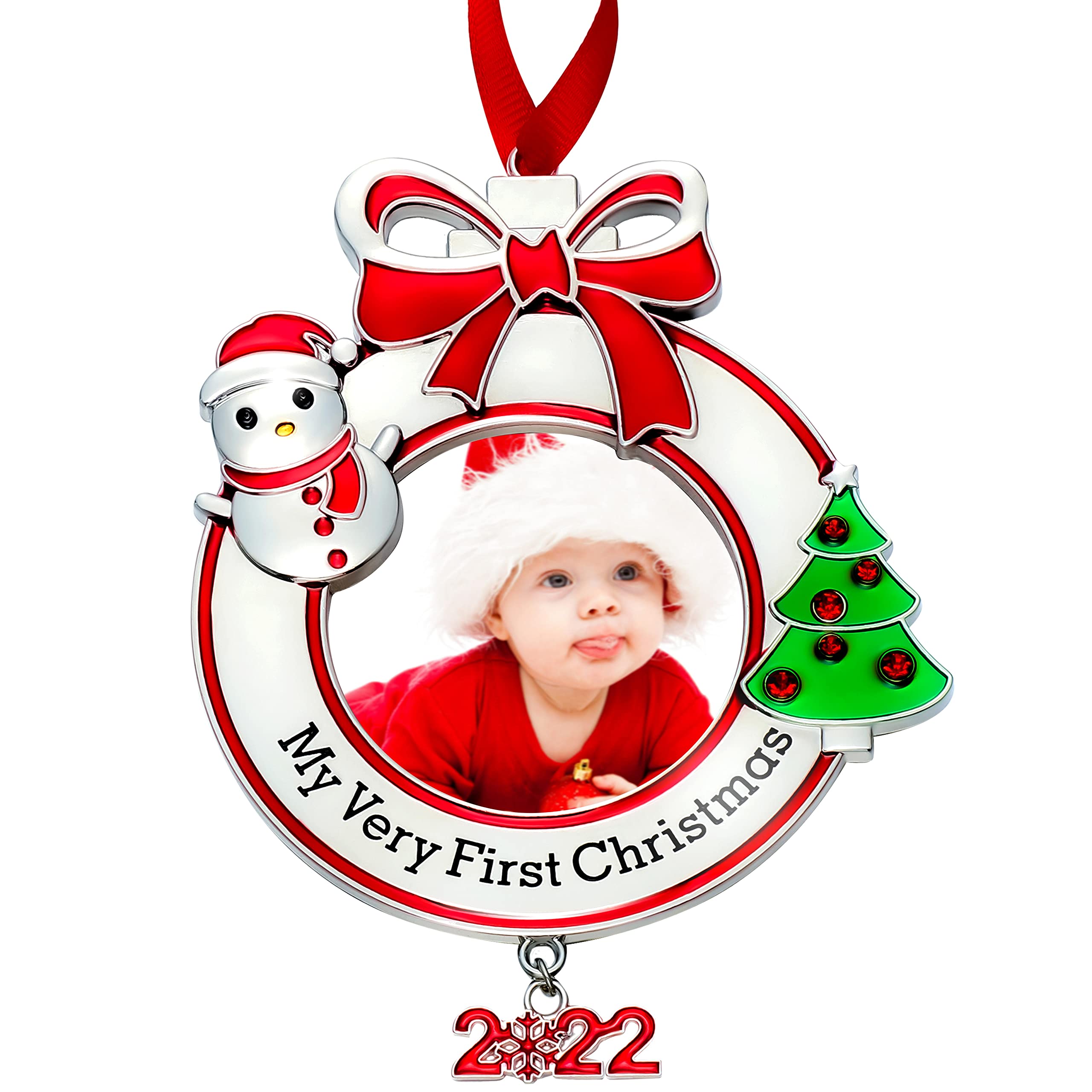 Diverse applications: the picture holder hanging Christmas tree ornament can be decorated in various places in your home, such as Christmas trees, mantels, ceilings, walls, study rooms, table tops, cabinets and other places you want to decorate. Easy to use: this hanging snowman Christmas tree photo ornament is convenient for you to use, the top of the frame is pre-punched, so you just need to wear the photo frame with a rope, and before using it, you can cut the photo or postcard you want to hang according to the size of the photo frame, which can well bring you a lot of convenience and give you a comfortable feeling. Christmas-themed design: the overall design of our metal hanging photo frame decorations is Christmas-themed, such as Christmas tree, Christmas bow, snowmen, catering to the Christmas theme and creating a joyful holiday atmosphere, you can put your newborn baby photos into this frame. Reliable and sturdy material: the baby's first Christmas 2022 photo ornament is made of reliable and sturdy metal material, featuring fine workmanship and exquisite appearance, vivid shape and rich colors, not easily deformed, giving you a long lasting decorative effect. What you get: the package comes with 1 piece of metal Christmas photo frame with warm phrase Baby's First Christmas 2022, measuring about 4.5 inches, the delicate design and proper size is suitable for decorating your home or Christmas tree, bringing color and beauty to your home.Date First Available: August 3, 2021. Best Sellers Rank: #3,502 in Baby. Customer Reviews: 4.7 out of 5 stars 179 ratings 4.7 out of 5 stars. Item model number: Yookeer-Photo Ornament-02. : B09BR1JK46. Manufacturer: Yookeer. Item Weight: 4.2 ounces. Package Dimensions: 5.67 x 4.76 x 0.67 inches. Number of Pieces: 1. Scent: Unscented. Batteries Required?: No. Unit Count: 1.0 Count. Item Package Quantity: 1. Mounting Type: Hanging. Shape: Round. Style: Round. Theme: Holiday,Christmas. Material: Metal. Occasion: Christmas. Brand: Yookeer.