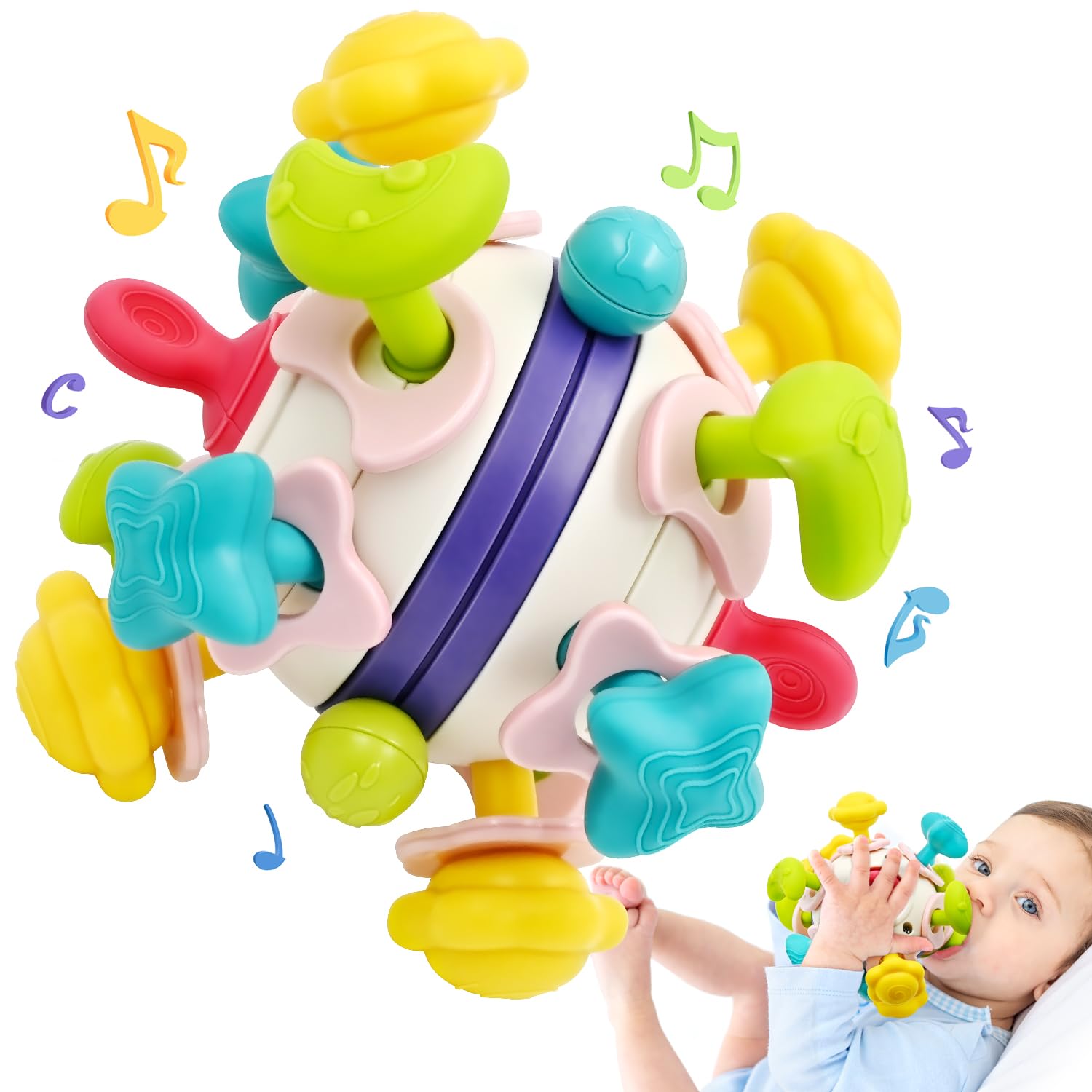 Easily clean and sterilizeOur bite ring gripping ball is made of durable BPA-free plastic and high-quality, heat-resistant silicone in food quality, it can be sterilized with UV light or boiling water.We also recommend that we first wash the surface with hot water, then put the toy in the steam cleaner in order to clean it thoroughly so that the steam penetrates deep into the cracks, and then drying or hanging for drying.Perfect gift for young girlsOur toy is specially designed for baby 0-18 months.Greifball is light and easy, it is an ideal toy for different occasions, such as travel by plane train car.If you are looking for birthdays, baby shower, Christmas, Thanksgiving, New Year, Children's Day or other holiday gifts, our toys is the perfect choice.Our space will certainly captivate the babies!.Sensoric tooth aid for babies 3-12 monthsOur toy is rattle, bite ring and gripping ball in one.Living colors and numerous shapes stimulate babies to grab and chew.During teething, toys can satisfy the baby's oral desire, relieves the symptoms caused by gum pain.Greifball has different textures and patterns can offer wonderful tactile experiences for babies 6-12 months, it is a fun sensory toy.Funny rattles babybite ring with 12 ABS rings and built-in bell that makes gentle rattling noises to awaken your baby's attention.The middle of 3 ABS balls with different textures, they can be pushed and pulled, and rotation around the ball, create ""there"" sounded.Bubble bubbles can be pushed and pulled, fun ""pop pop"" sounded.Both sides of toys can be turned and give a satisfactory click noise, hearing babies stimulated.Premium Montessori Beißring BabyGreifball is a high -quality toy for baby 4 6 12 months.It consists of 12 bite ring ball and ABS rings, 2 silicone bubbles.Development of the baby's fine motor skills and hand-eye coordination by pushing and pulling silicone bubbles, spinning rings.Rich colors and textures promote sensory development of the baby.Bicycle makes the teeth make teeth easier from 6-12 months.It is certified according to ASTM and CPSIA, a safe toy that is familiar with the mom.Leicht Reinigen und SterilisierenUnser beißring greifball ist aus haltbarem BPA-freiem Kunststoff und hochwertigem, hitzebeständigem Silikon in Lebensmittelqualität hergestellt, Es kann mit UV-Licht oder kochendem Wasser sterilisiert werden. Wir empfehlen auch, die Oberfläche zunächst mit heißem Wasser zu waschen, Dann das Spielzeug in den Dampfreiniger geben, um es gründlich zu reinigen, damit der Dampf tief in die Ritzen eindringt, und anschließend trocknen oder zum Trocknen aufhängen. Perfektes Geschenk für Jungen MädchenUnser Spielzeug ist speziell für Baby 0-18 Monaten konzipiert. Greifball ist leicht und einfach, Er ist ein ideales Spielzeug für verschiedene Gelegenheiten, wie Reisen mit dem Flugzeug Zug Auto. Wenn Sie auf der Suche nach Geburtstags, Baby Shower, Weihnachts, Thanksgiving, Neujahrs, Kindertags oder anderen Feiertagsgeschenken sind, ist unser spielzeug die perfekte Wahl. Unser weltraum greifball die Babys mit Sicherheit in ihren Bann ziehen wird!. Sensorik Zahnungshilfe für Babys 3-12 MonatenUnser Spielzeug ist Rassel, Beißring und greifball in einem. Lebendige Farben und zahlreiche Formen regen Babys zum Greifen und Kauen. Während des Zahnens, kann Spielzeug das orale Verlangen des Babys befriedigen, lindert die durch Zahnfleischschmerzen verursachten Beschwerden. Greifball verfügt über verschiedene Texturen und Muster können wunderbare taktile Erfahrungen für Babys 6-12 Monate bieten, ist es ein Spaß sensorischen spielzeug. Lustige Rassel BabyBeißring mit 12 ABS-Ringen und eingebauter Glocke, die sanfte Rasselgeräusche macht, um die Aufmerksamkeit Ihres Babys zu wecken. Die Mitte von 3 ABS-Kugeln mit verschiedenen Texturen, Sie können geschoben und gezogen werden, und drehung um den Ball, erstellen ""Da Da"" Klang. Beißring Blasen können geschoben und gezogen werden, machen Spaß ""Pop Pop"" Klang. Beide Seiten Spielzeug können gedreht werden und geben ein befriedigendes Klickgeräusch ab, Gehör Babys stimuliert. Prämie Montessori Beißring BabyGreifball ist ein hochwertiges spielzeug für baby 4 6 12 Monate. Es besteht aus 12 beißring kugel und ABS-Ringen, 2 Silikonblasen. Entwicklung der Feinmotorik des Babys und Hand-Augen-Koordination durch Schieben und Ziehen von Silikonblasen, Spinnringen. Satte farben und texturen fördern sensorische entwicklung des baby. Beißringe erleichtern Baby ab 6-12 Monaten das Zahnen. Es ist nach ASTM und CPSIA zertifiziert, ein sicheres Spielzeug, dem Mama vertraut.Baby-Sensorik Zahnen Relief Spielzeug, Montessori pädagogisches Lernspielzeug für 1 Jahr altes Mädchen Geschenk, Säugling Rasseln Kauen Zahnen Ball für Babys 0 6 12 18 Monate