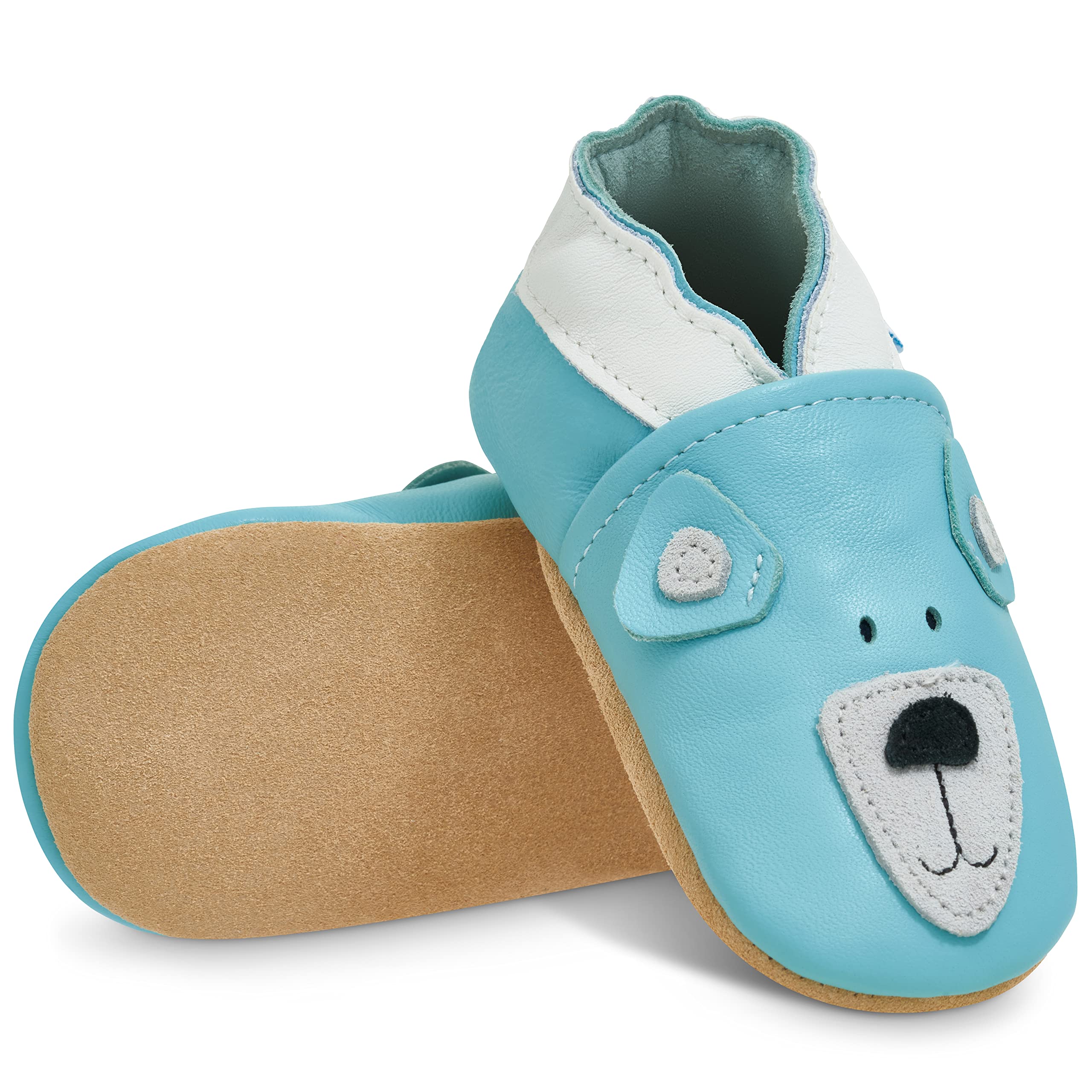 Baby Shoes with Soft Sole - Baby Girl Shoes - Baby Boy Shoes - Leather Toddler Shoes - Baby Walking Shoes 0-6 Months Blue Bear