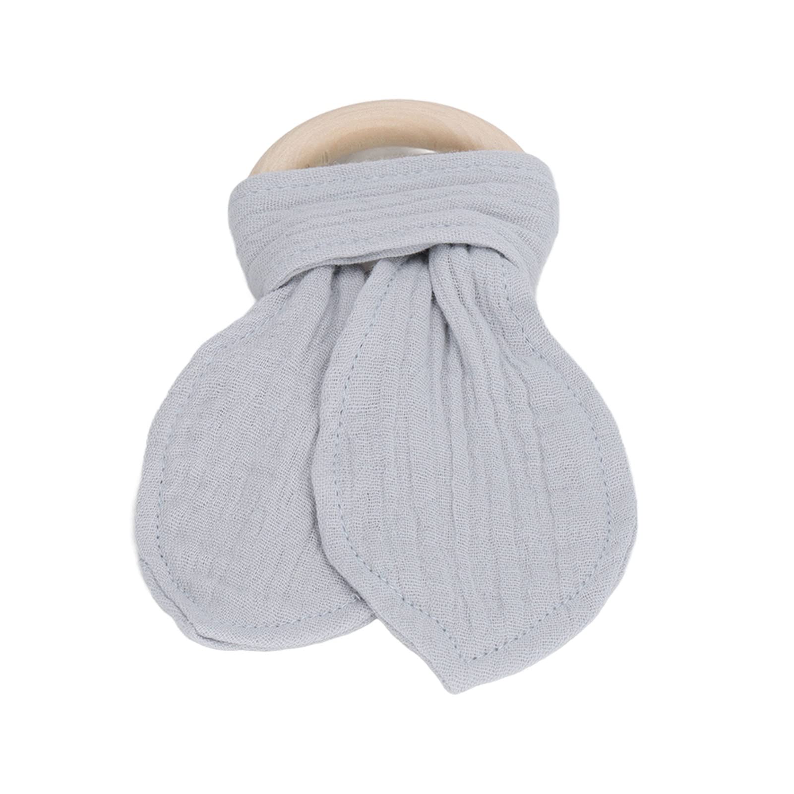 Baby Zahnen Holzring, Baby Holzring BeißRing Hasenohren Design Beruhigende Bissfeste Baumwollgaze Fein Verarbeitet FüR Babys (Grau)