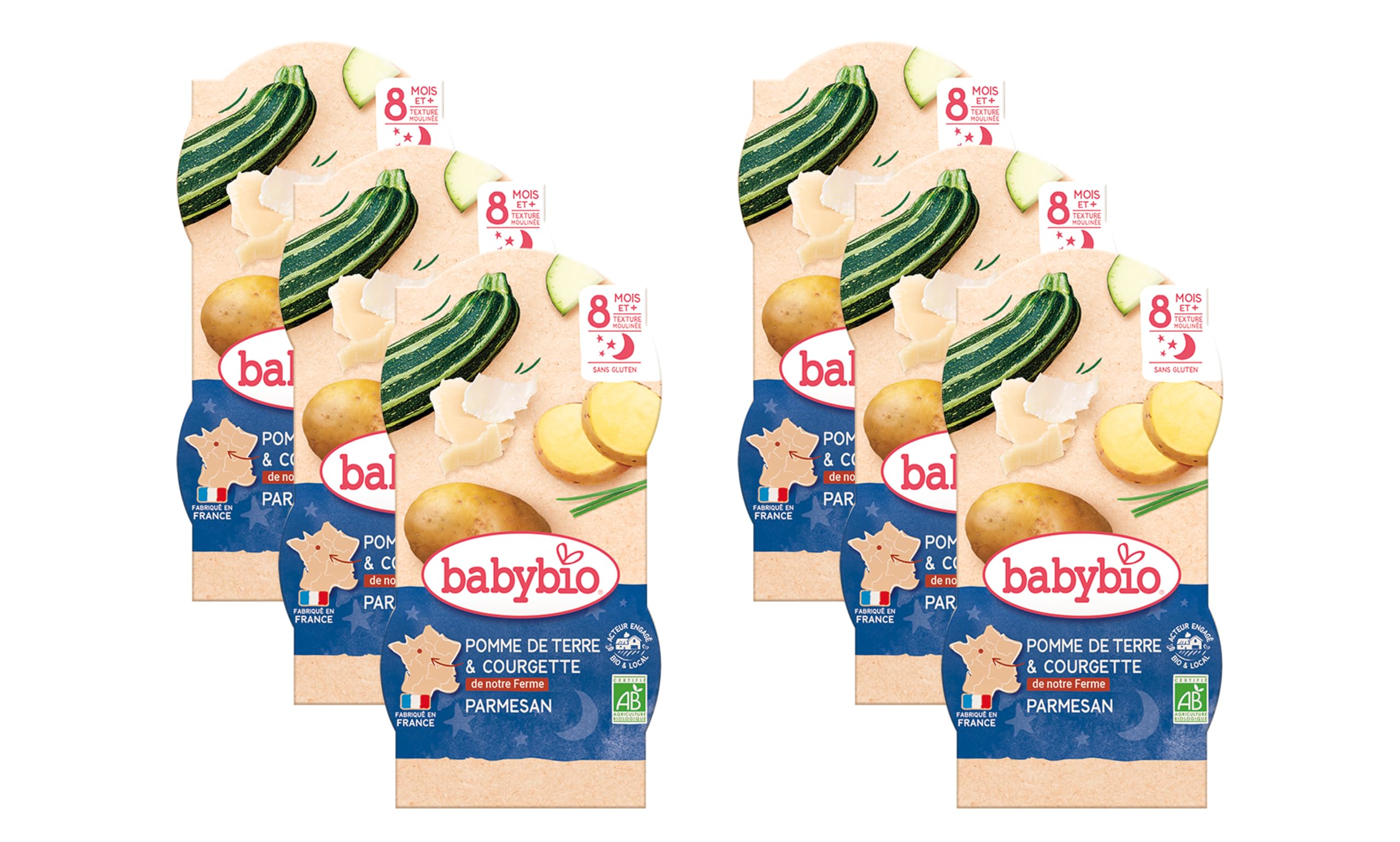 A Journey Through Flavors: With this recipe, baby will travel the world. From Loire Valley potatoes to Provençal zucchini, Baby Bio has brought together a variety of flavors to turn your little ones into true adventurers. Ingredients: Vegetables 74 (Loire Valley potatoes 55 , Provençal zucchini 14 , Spanish onions 5 ), cooking water, whole cream 2 , Italian Parmesan cheese , French chives . Ingredients from organic farming.Made in France. Organic. Gluten-free. Allergens: milk.Balade au fil des saveurs Avec cette recette, bébé va voyager. Des pommes de terre du Val de Loire aux courgettes de Provence, Baby bio a réuni des saveurs variées pour faire de vos petits bouts de vrais aventuriers. Ingrédients : Légumes 74 (pommes de terre du Val de Loire 55 , courgettes de Provence 14 , oignons d'Espagne 5 ), eau de cuisson, crème fraiche entière 2 , parmesan d'Italie , ciboulette de France . Ingrédients issus de l'agriculture biologique.Fabriqué en France. Biologique. Sans gluten. Allergènes : lait.Babybio Bols Ecrasé de Pomme de Terre Courgette de Provence 2x200 g - Lot de 6