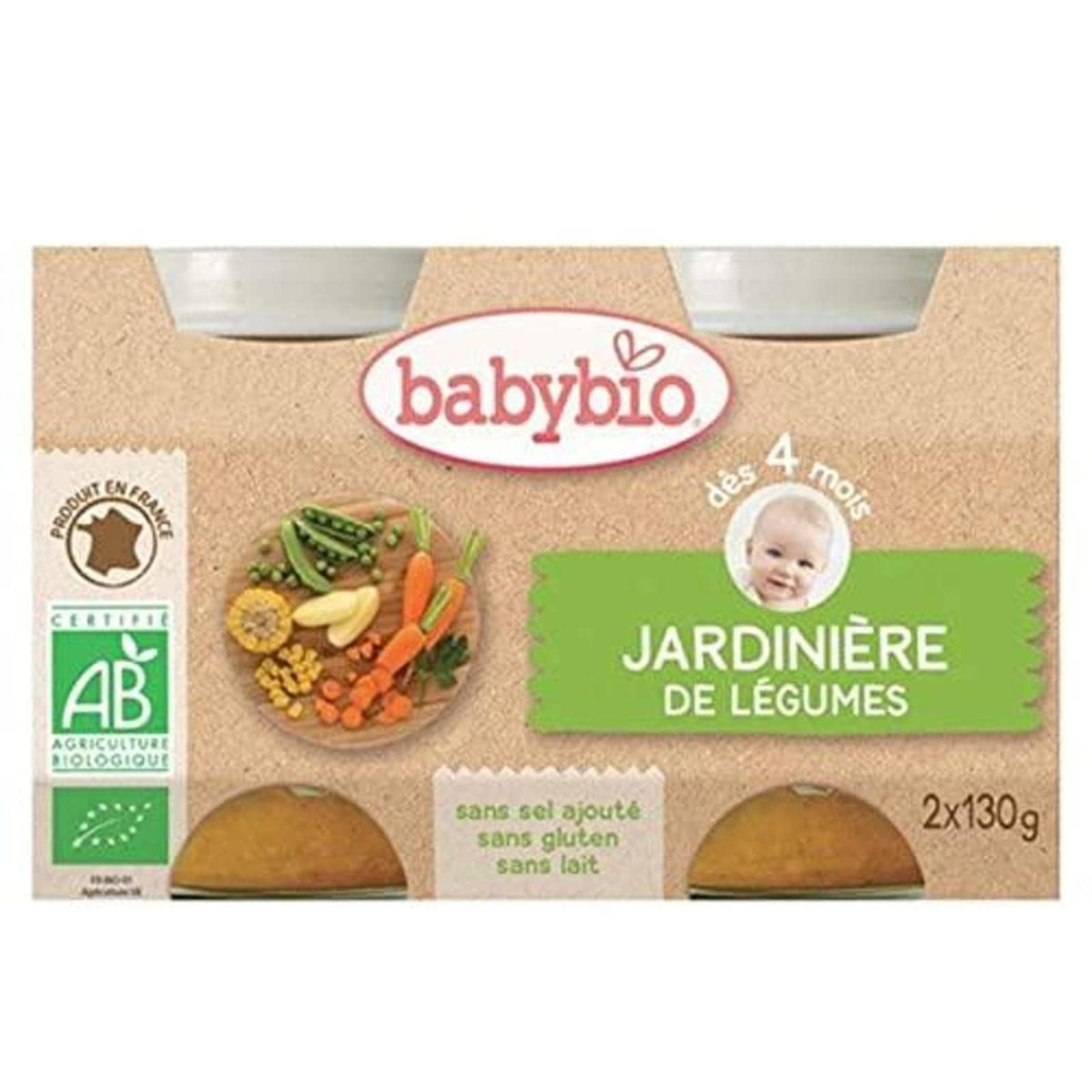 Babybio Jardinière de légumes, dès 4 mois, bio - Les 2 pots de 130g