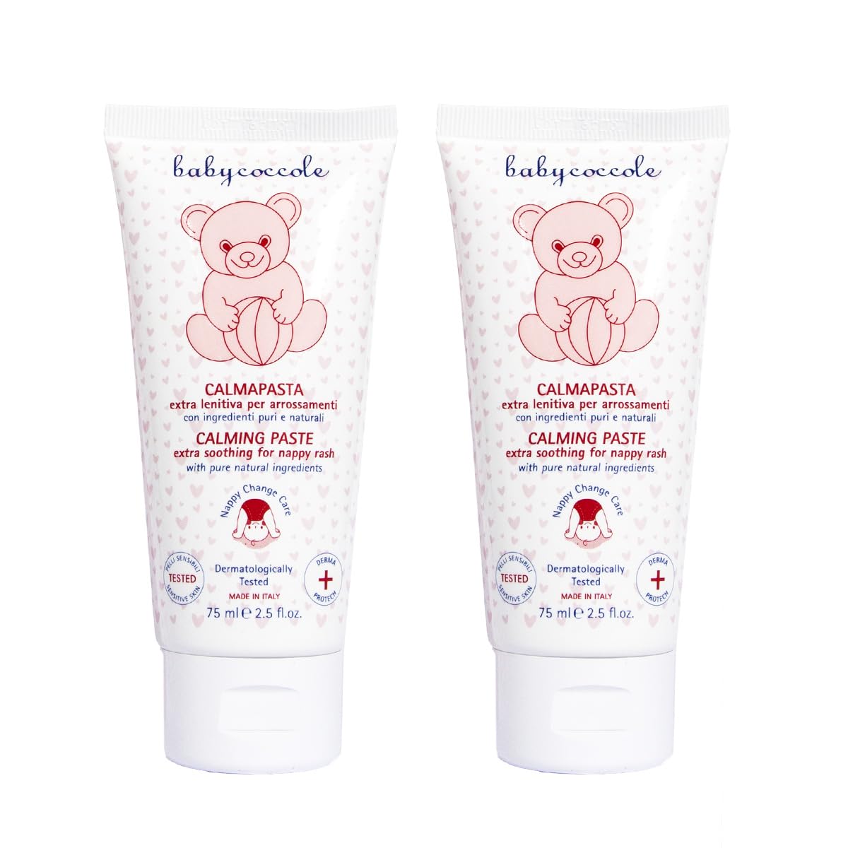 A daily stroking to protect your baby's delicate and sensitive skin and relieve the skin reducing caused by the diaper.This soothing and moisturizing cream with 20 zinc oxide is easy to apply and applied, especially after every diaper change, in order to change the delicate skin of the little ones through the pure and natural principles of the bisabolol of chamomile and vitamin f of linen.Dermatologically tested for sensitive skin.Made in Italy.product made 100 in Italy, formulated and manufactured in the Betafarma s.p.a factory in Cesan Boscone (mi).Application: Apply the product on and after every diaper change and after every skin of the skin in the genital area and the poen, by gently massage between the skin folds.Pure gentle protection: contains pure and natural ingredients that are also particularly gentle.Without perfume, preservatives and dyes.Without Parabens, GVO, SLS, Phtalate, Formaldehyde, Triclosan.Regeneration and protection: thanks to pure and natural ingredients such as chamomile bisabolol, it promotes the natural regeneration process of the skin of babies and toddlers.It maintains dry, cracked, sensitive and easily irritable skin, protects it from drying out and stabilizes the natural barrier function of the skin.With 20 zinc oxide: for immediate relief irritated and reddened skin from the diaper, reduces redness and soothes the skin.Pack with 2 pieces of diaper change cream with 75 ml.Ein tägliches Streicheln, um die zarte und empfindliche Haut Ihres Babys zu schützen und die durch die Windel verursachten Hautrötungen zu lindern. Diese beruhigende und feuchtigkeitsspendende Creme mit 20 Zinkoxid ist leicht aufzutragen und regelmäßig aufzutragen, insbesondere nach jedem Windelwechsel, um die zarte Haut der Kleinen durch die reinen und natürlichen Prinzipien des Bisabolol der Kamille und des Vitamin F von Leinen. Dermatologisch getestet für empfindliche Haut. Hergestellt in Italien.Produkt zu 100 in Italien hergestellt, formuliert und hergestellt in der Fabrik von Betafarma S.p.A in Cesan Boscone (MI). Anwendung: Tragen Sie das Produkt bei jedem Windelwechsel auf und nach jeder Wäsche der Haut im Genitalbereich und des Poens auf, indem Sie sanft zwischen die Hautfalten einmassieren. Reiner Sanfter Schutz: Enthält reine und natürliche Inhaltsstoffe, die auch empfindliche Haut besonders sanft sind. Ohne Parfüm, Konservierungsstoffe und Farbstoffe. Ohne Parabene, GVO, SLS, Phtalate, Formaldehyd, Triclosan. Regeneration und Schutz: Dank reiner und natürlicher Inhaltsstoffe wie Kamille-Bisabolol fördert es den natürlichen Regenerationsprozess der Haut von Babys und Kleinkindern. Es pflegt trockene, rissige, empfindliche und leicht reizbare Haut, schützt sie vor Austrocknung und stabilisiert die natürliche Barrierefunktion der Haut. Mit 20 Zinkoxid: Für sofortige Linderung gereizter und geröteter Haut von der Windel, reduziert Rötungen und beruhigt die Haut. Packung mit 2 Stück Windelwechselcreme mit je 75 ml. Vorteilspackung zum Sonderpreis.Babyclocke-Set, 2 Stück, beruhigend, Zinkoxid, 20 Zinkoxid, Creme zum Windeln, spendet Feuchtigkeit, beruhigt, schützt die Haut vor Rötungen. Natürliche Inhaltsstoffe - 2 x 75 ml 2 confezioni da 75 ml l'una