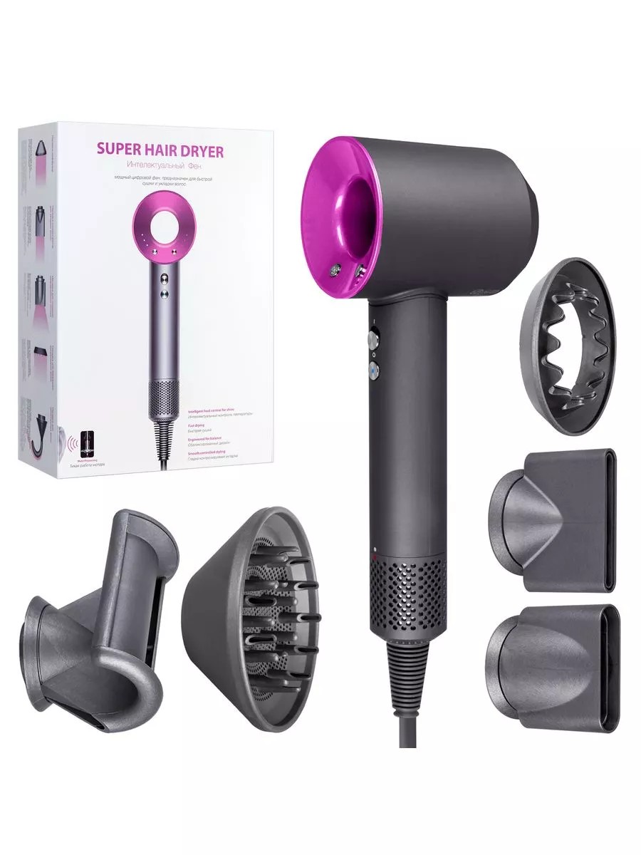 Профессиональный фен для волос Super Hair Dryer, с насадками в комплекте обеспечивает безопасный и здоровый уход за волосами любой длины и густоты. Электронная панель управления позволяет подобрать параметры нагрева и скорости обдува, подходящие типу прядей и способу укладки, чтобы обеспечить эффективную сушку не нанося вред волосам. Сильный воздушный поток и нагрев способны справиться даже с самыми непослушными волосами. Super Hair Dryer - это аналог всем известного премиум фена, в комплекте с 5 насадок: насадка концентратор, насадка диффузор, для непослушных волос, для бережного высушивания волос, насадка для создания направленного потока. 3 режима скорости, 4 режима температуры. Длина шнура 270 см., прекрасно подойдёт для использования в салонах красоты т.к. фен является профессиональным! Аналогичные модели известных брендов в 10 раза дороже, а эффект тот же. Обязательно перед отправкой, фен проходит все проверки на работоспособность, надёжно упаковывается и отправляется до покупателя целым и невредимым т.к. мы работаем на долгосрочные отношения!