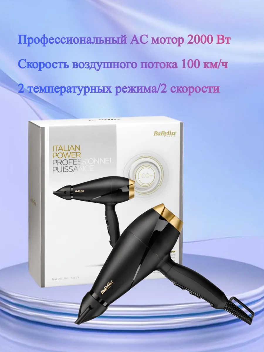Фен для укладки волос Babyliss 6704E оборудован мощным профессиональным AC-мотором (2000 Вт), за счёт чего он позволяет быстро высушить волосы и сделать красивую причёску. Регулируйте температуру и скорость воздушного потока так, как вам нужно. Для каждого из параметров предусмотрено два режима (2 температурных режима + холодный / 2 скорости). Скорость воздушного потока 100 км/ч. Функция «Холодный воздух» без удержания кнопки. Ультратонкая насадка-концентратор 6 мм. Профессиональный шнур 2.8м. Бэйбилис произведен в Италии