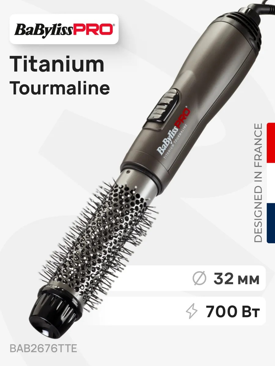 Фен-щетка BaByliss Pro Titanium Tourmaline BAB2676TTE мощностью 700 Вт объединяет в себе две функции: сушки и укладки.