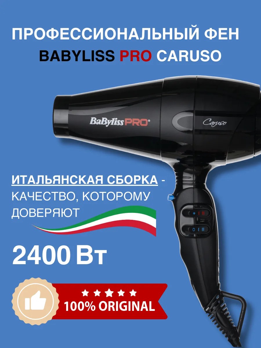 BaByliss PRO Caruso BAB6520RE – это сочетание высокой мощности, эргономичного дизайна и итальянского качества. Оригинальная продукция, произведенная в Италии, станет надежным помощником для создания профессиональных укладок и подарит комфорт в использовании.