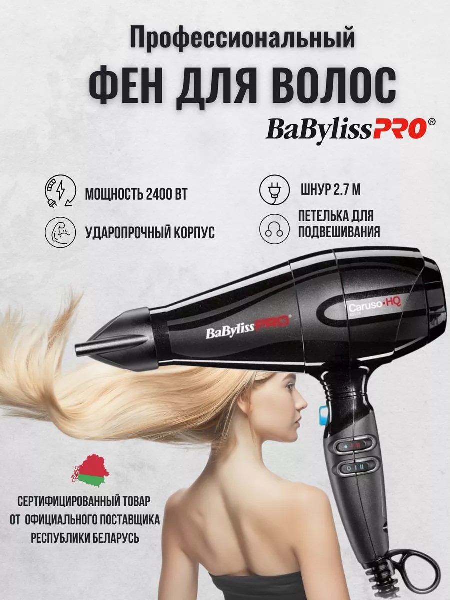 Профессиональный парикмахерский фен для сушки и укладки Babyliss Pro Caruso-HQ ionic BAB6970IE с насадками и ионизатором. Премиум модель babylis pro Caruso HQ - лучший помощник для парикмахера в домашнем и салонном уходе, произведена в Италии. С мощным бесшумным мотором Бебилис про ионик Карузо создаст оригинальный стиль и прикорневой объём, без посещения салона, как женщинам, так и мужчинам. Бейбелис Caruso HQ ionic BAB 6970 IE и его мощность позволит легко и быстро высушить густые, длинные и непослушные волосы. Три температурных режима Бэбилис Про и две настройки подачи воздуха, помогут достичь идеального результата. BaBy liss Корузо имеет кнопку с функцией «холодный обдув» при которой температура снижается и фиксирует локоны. Уложить и выпрямить, завить и поднять у корней с техникой Бабилисс очень просто. Бебилисс CarusoHQ 6970IE обладает встроенной ионизацией, благодаря положительно заряженным ионам придает прядям глянцевый блеск. В комплект к стайлеру BabylissPro Карусо идет узкая и широкая насадка-концентратор с эффектом Вентури 6мм x 60 мм и 6 мм х 75 мм. Оригинальный подарок babylispro стилисту или барберу, маме, бабушке, жене, сестре, подруге на День рождения, юбилей или на любой праздник.