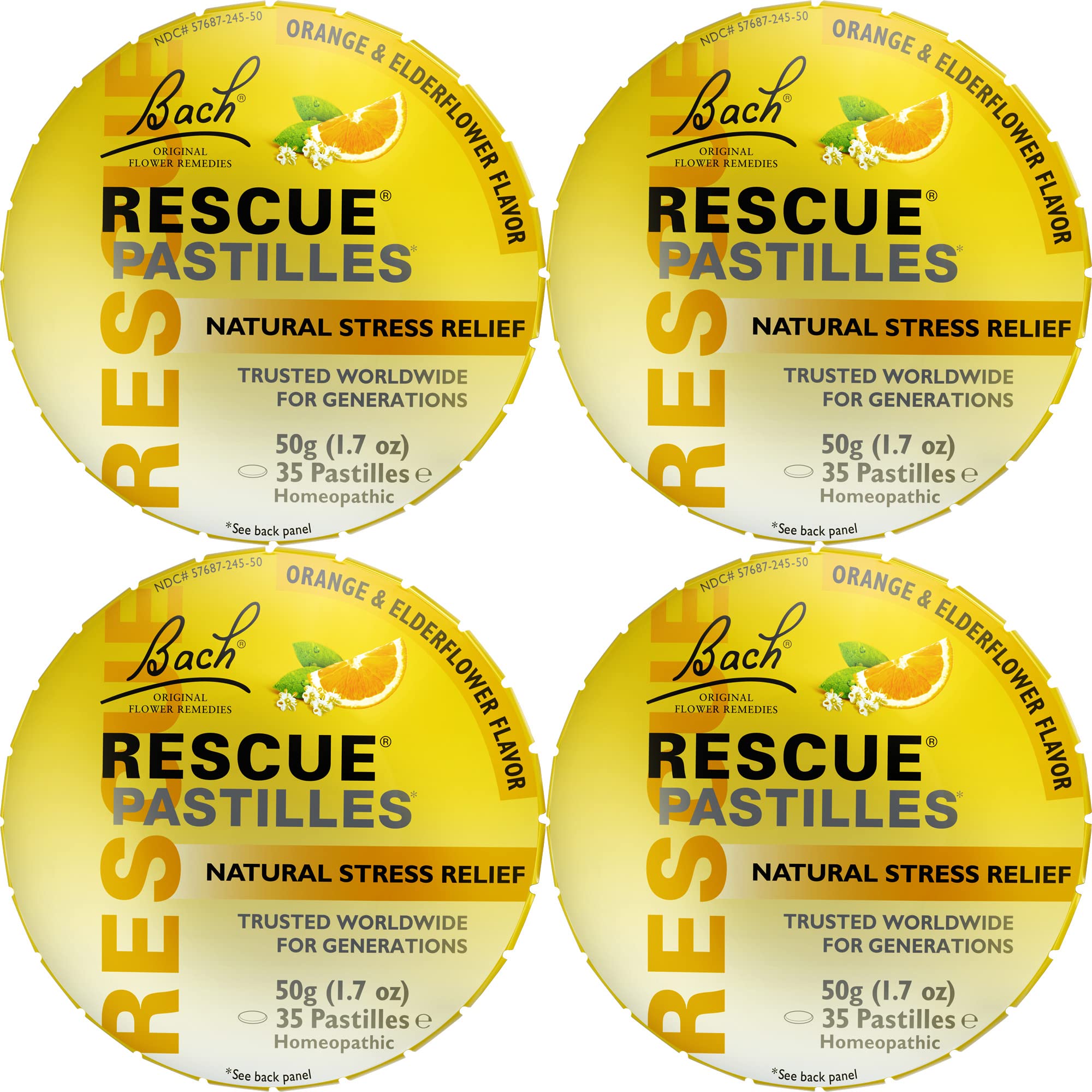 Bach Rescue PASTILLES Orange and Elderflower Flavor Natural Stress Relief Lozenges Homeopathic Flower Essence Vegetarian Gluten & Sugar-Free 4 Count Orange & Elderflower