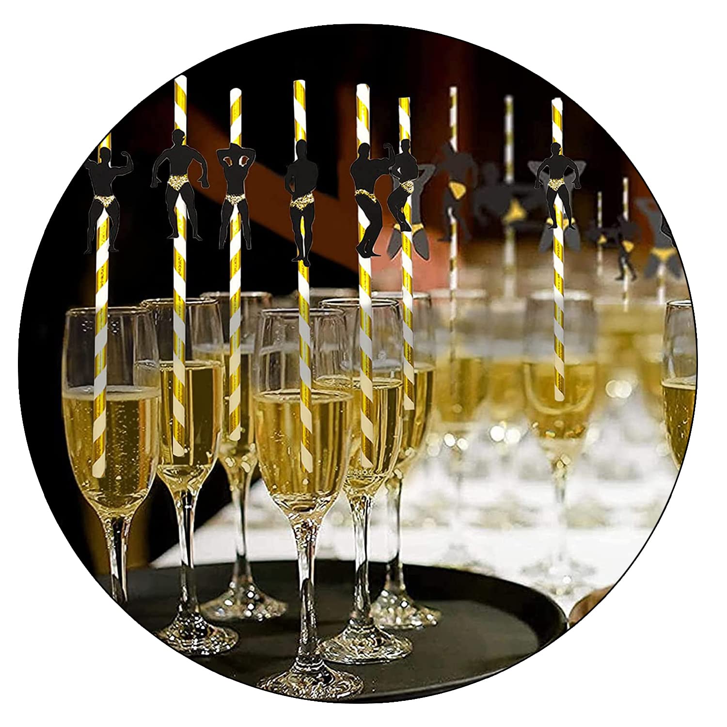 Looking to add some unique fun twist to your drink bar mimosa corner table? We got you covered Introducing our stripper dancing men confetti straws. Made with gold and black glitter confetti glued to an elegant gold foil paper straw. Add some glamorous yet naughty twist you your events. Perfect for bridal shower party decorations, bachelorette party , girls night out, hendo parties, birthday party, divorce party. Great for frozen drinks, cocktails, margarita etc Create picture perfect moments while sipping on this hilarious straws. on a white and gold strip paper straw. Say cheers and sip sip hurry. Oh you could also use them as cakepop sticks.?NOTICE?Say cheers and sip sip hurry. Oh you could also use them as cakepop sticks. ?NO NEED TO PASTE?All straws are pasted and can be used directly. ?MULTI-OCCASIONS?Bachelorette Party Supplies are perfect for all kinds of parties, such as bachelorette parties, girls night parties, Mexican festivals, naughty parties, bridal showers and any party supplies. These straws are also great for everyday drinking like beverages, bottles, cocktail glasses, drinking games and more. ?PREMIUE MATERIAL? The bachelor party straw is made of virgin wood pulp paper, which is safe and environmentally friendly. ?COMBINATION DESIGN?Men's bodybuilding exercises, muscle line poses, golden paper straws, drink dessert decorations, eye-catching.