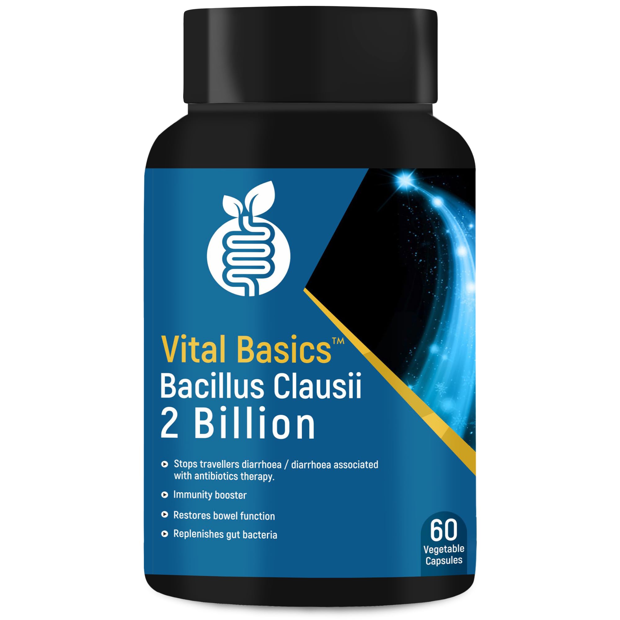Vital Basics Bacillus Clausii( 2 Billion), is a scientifically studied probiotic strain, it has got vital role for human health. (Note: Dose of probiotic is designed, as per guidelines of daily recommend dose) 2)Potent immunity booster. 3) Beneficial in traveller's diarrhoea. 4) Restores gut flora imbalance associated with antibiotic therapy. 5) Helps in increg absorption of nutrients in intestine, apparently you could get complete benefits of your high quality nutrition diet.