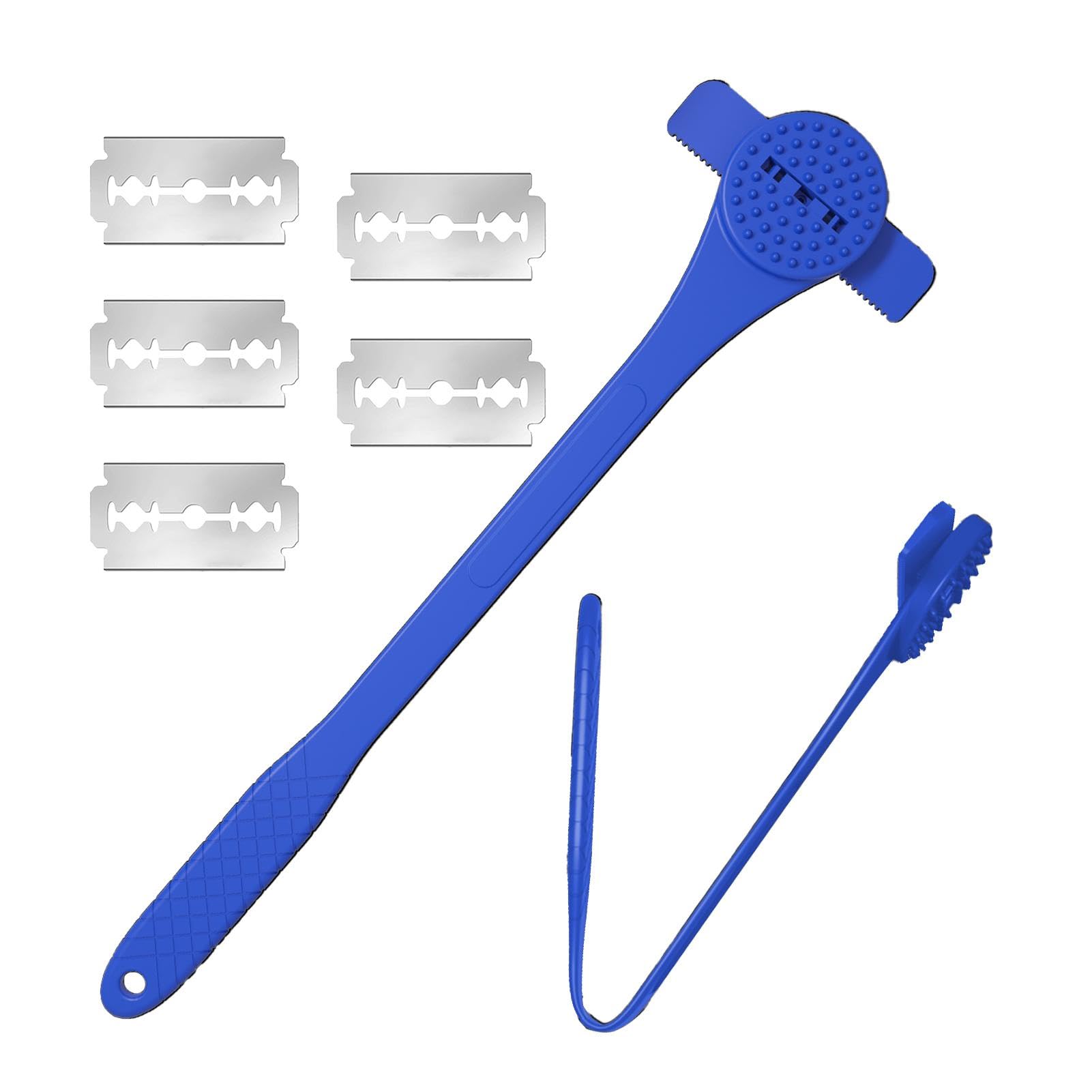 Rückenhaarrasierer für Männer – Flexibler ergonomischer Rückenrasierer mit Silikongriff | 2-in-1 multifunktionaler Anti-Rutsch-Griff, Pflege-Massagewerkzeuge für Männer, Jungen, Männer, Erwachsene blau