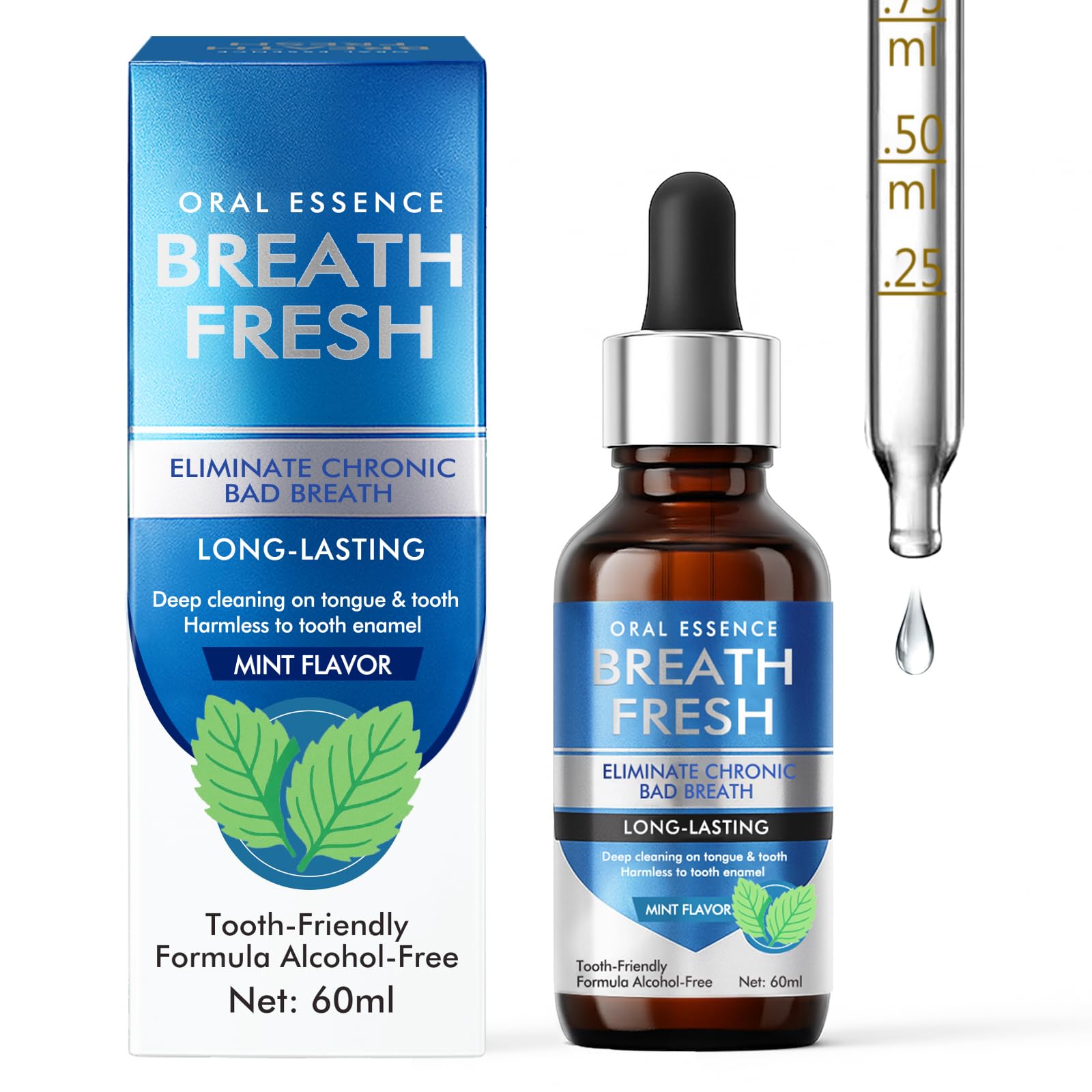 Convenient Discreet The sleek, leak-proof bottle fits perfectly in your pocket, purse, or briefcase for on-the-go freshness whenever needed. Each compact 0.68 oz bottle contains approximately 90 servings, making it your perfect travel companion for business trips, vacations, or daily commuting. The precise dropper ensures perfect dosage every time - no messy spills or guessing required. Much more convenient than carrying breath spray cans or bulky mouthwash bottles. Boost Social Confidence Never worry about awkward social moments again with our reliable bad breath solution that lets you speak, laugh, and interact with complete confidence. Whether you're in close business meetings, intimate dinners, or casual conversations, maintain professional and personal connections without hesitation. The discreet application takes just seconds but provides peace of mind that lasts throughout your most important moments and social interactions. Long-Lasting Protection Stay confidently fresh for hours with our sustained-release technology that provides continuous protection against bad breath. Clinical tests show our formula maintains fresh breath for up to 8 hours - significantly longer than typical mouth spray fresh breath products. The micro-encapsulated active ingredients adhere to oral surfaces, gradually releg their freshening power throughout your day. Natural And Safe Formula Featuring a carefully selected blend of parsley seed oil, peppermint extract, and zinc gluconate, our bad breath treatment for adults uses nature's ingredients to combat oral odor. Free from alcohol, sugar, artificial colors, and harsh chemicals, it's gentle enough for daily use and safe for sensitive mouths. The formula works in harmony with your oral microbiome while supporting overall gum restore and oral probiotics balance without disrupting your natural flora. Instant Freshness Experience immediate relief from bad breath with our advanced formula that starts working in seconds. Our bad breath treatment penetrates deep to neutralize sulfur compounds at their source. The powerful blend of natural essential oils and vitamin D creates an invigorating minty freshness that awakens your senses while effectively eliminating embarrassing odors after meals, during meetings, or before important social engagements.