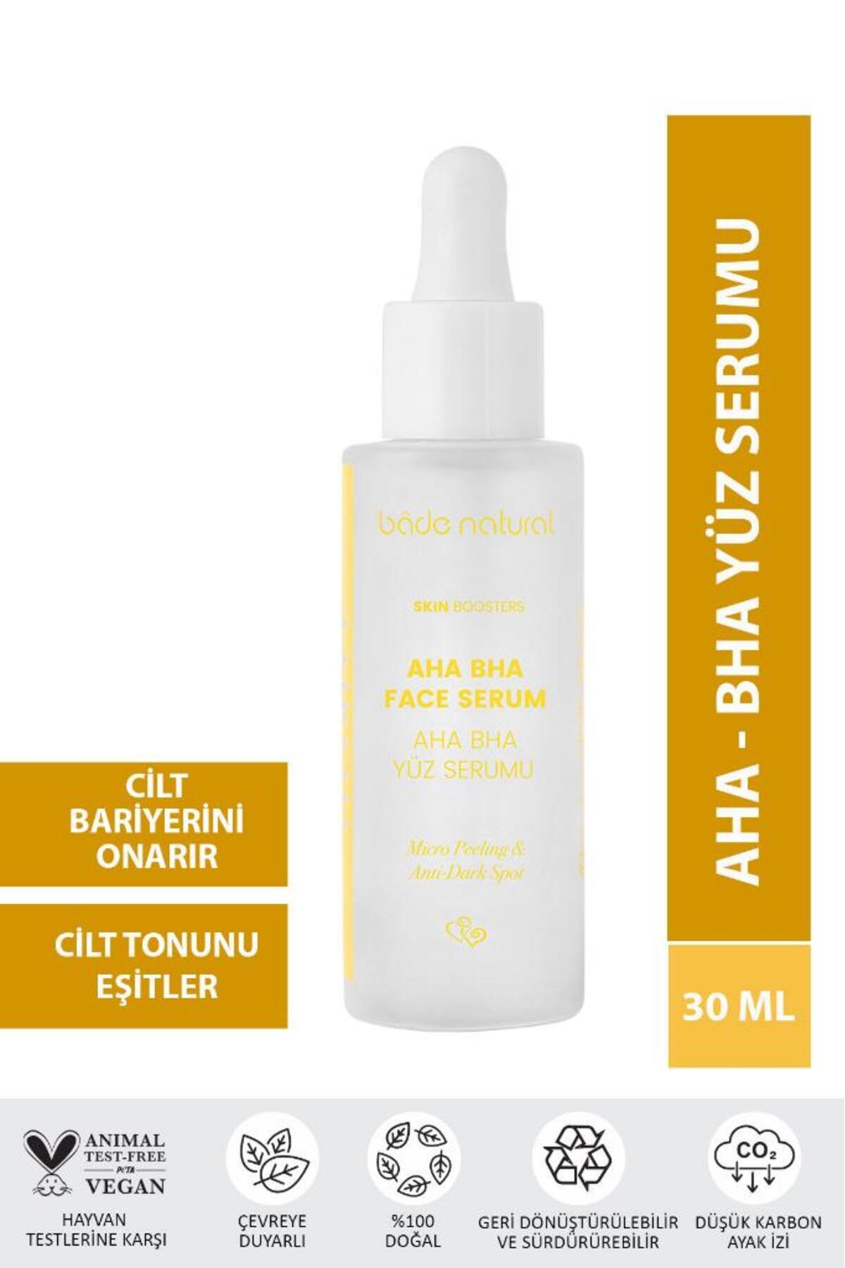 AHA (Alpha Hydroxy Acids) and BHA (Beta Hydroxy Acids) are acids that provide a peeling effect to help you achieve smoother skin.Bade Natural AHA BHA Facial Serum purifies your skin from dead skin. It prevents spots that may occur due to aging and sun.It prevents acne formation by controlling sebum balance. It supports the tightening of pores.