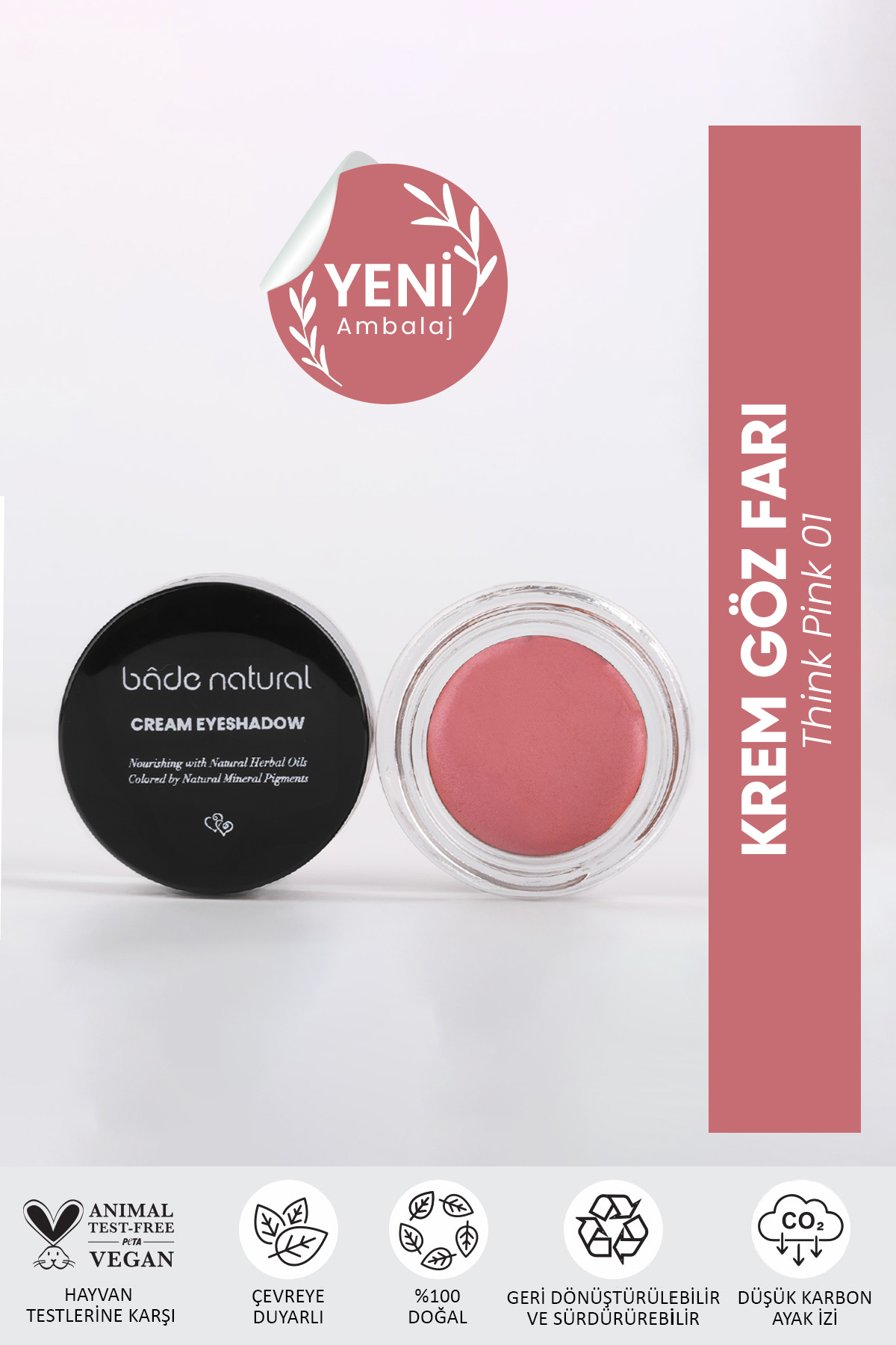 Bade Natural Cream Eyeshadow Think Pink 01 is produced with raw materials supplied from certified producers and after quality control tests in our R D center, filling processes are completed in our factory.Bade Natural products are formulated with 100 natural raw materials and 100 pure essential oils. All of our products have been dermatologically tested. It is nature friendly