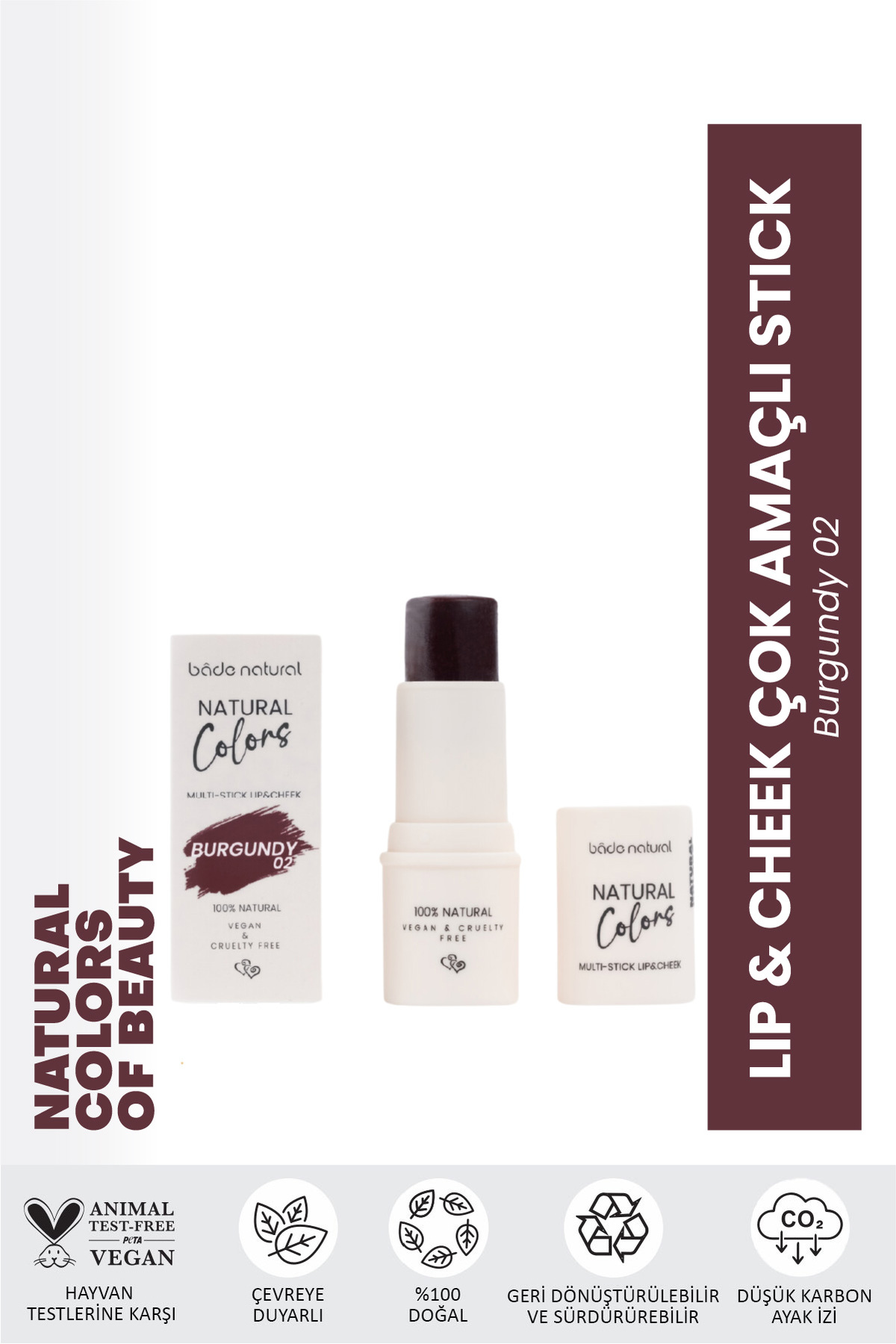 Bade Natural Lip Cheek Burgundy 02 Çok Amaçli Stick.