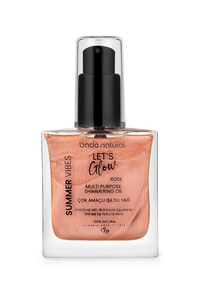 Bade Natural Rose Shimmer Multi-Use Oil 100% Natural Plant Oils with Plant Squalane Jojoba & Safflower Mica Glow Finish Moisturizer for Body 1.69 fl oz (50 ml)