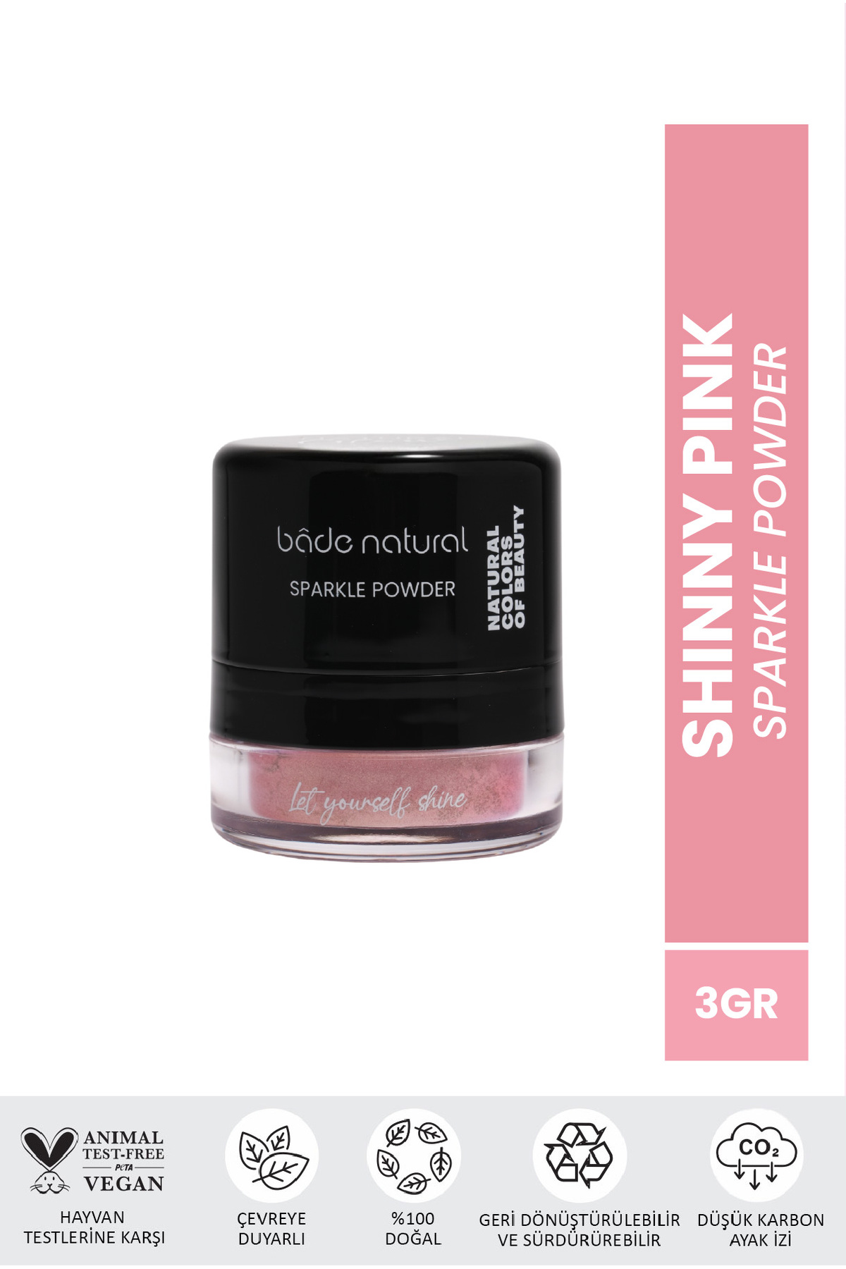 Bade Natural Sparkle Powder, 100 dogal mineral içerigi ile hem yüz hem cilt hem de saç bakiminiza aydinlik bir görünüm ve isilti katmak için özel olarak formüle edilmistir.