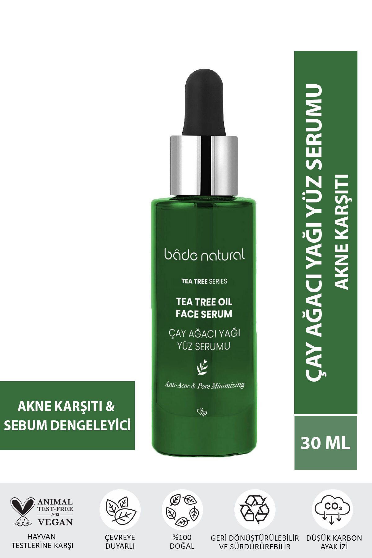 Bade Natural Anti-Acne and Pore Firming Tea Tree Facial Serum is produced with raw materials supplied from certified producers and after quality control tests in our R D center, filling processes are completed in our factory.