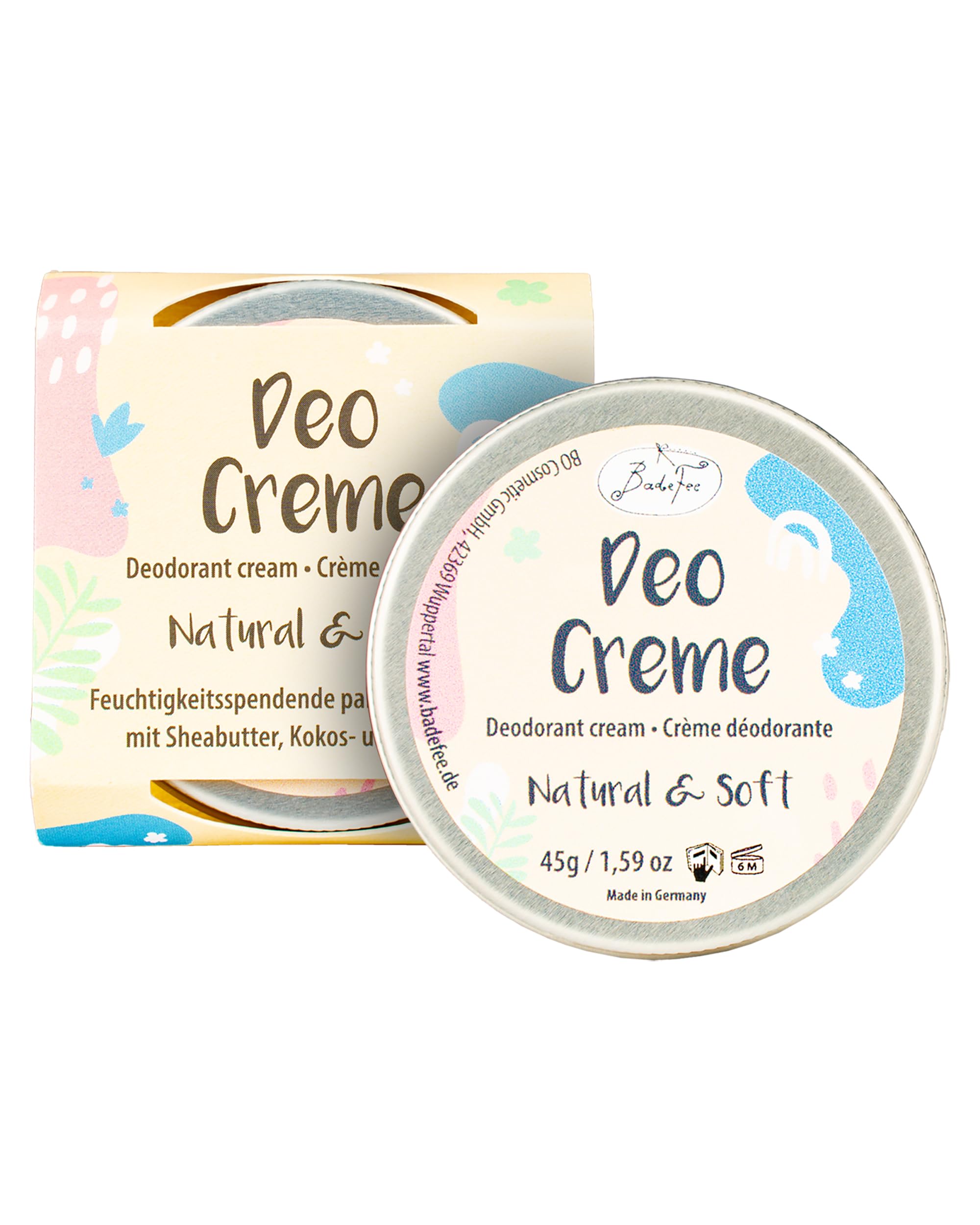 Badefee BadeFee Natural & Soft Vegan Deodorant Cream (50 ml) - Aluminium Free/with Shea Butter Coconut Oil and Almond Oil - Gentle Care and 24 Hour Protection against Sweat Odors for