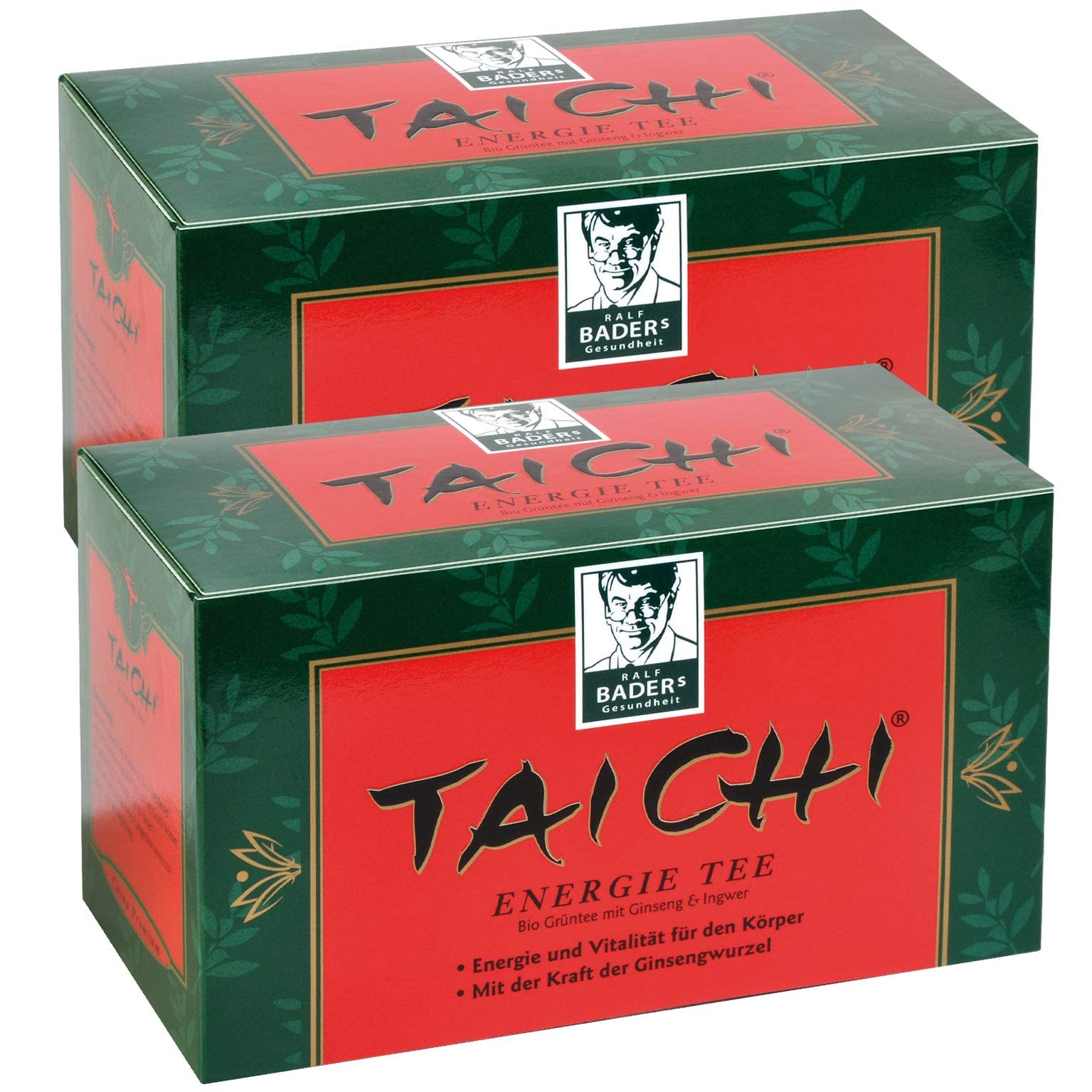 TAI CHI ENERGY TEA contains premium green tea, ginseng, and ginger from China. Lemongrass also complements this precious triad with its exotic and fresh flavor. Chi stands for energy and vitality in Traditional Chinese Medicine (TCM). Chi is the driving force behind all bodily processes. The body only has enough energy and vitality, i.e., enough chi, if the chi is not blocked. Green tea is known as a true fountain of youth, ginseng stands for holistically strengthening the body's energy, ginger supports this and helps to harmonize. TAI CHI ENERGY TEA is therefore not only a particularly healthy drink, but also a tea drink for the greatest pleasure of the palate. Ideal for active people, during times of increased energy needs, as an accompaniment to a diet, or simply to enjoy tea.Made in Germany under pharmaceutical control. High-yield quality, two filter bags per pot. Brewing time: two minutes. Exotic, fresh taste. Pure Chinese-quality green tea with ginseng, ginger, and lemongrass. TAI CHI ENERGY TEA contient du thé vert, du ginseng et du gingembre de qualité supérieure en Chine. La citronnelle complète également cette triade précieuse par sa saveur exotique et fraîche. Chi est synonyme d'énergie et de vitalité en médecine traditionnelle chinoise (MTC). Le chi est la force motrice de tous les processus du corps. L'organisme n'a suffisamment d'énergie et de vitalité, c'est-à-dire suffisamment de chi, si le chi n'est pas bloqué. Le thé vert est connu comme une véritable fontaine de jeunesse, le ginseng est synonyme de renforcement holistique de l'énergie du corps, le gingembre soutient cela et aide à s'harmoniser. Le TAI CHI ENERGIE TEA est donc non seulement une boisson particulièrement saine, mais aussi une boisson au thé pour le plus grand plaisir du palais. Idéal pour les personnes actives, en période de besoins énergétiques accrus, pour accompagner le régime alimentaire ou simplement pour profiter du thé.Fabriqué en Allemagne sous contrôle pharmaceutique. Qualité à rendement élevé, deux sacs filtrants par pot Temps de brassage deux minutes. Goût frais exotique. Thé vert de qualité chinoise pure variété au ginseng, au gingembre et à la citronnelle.