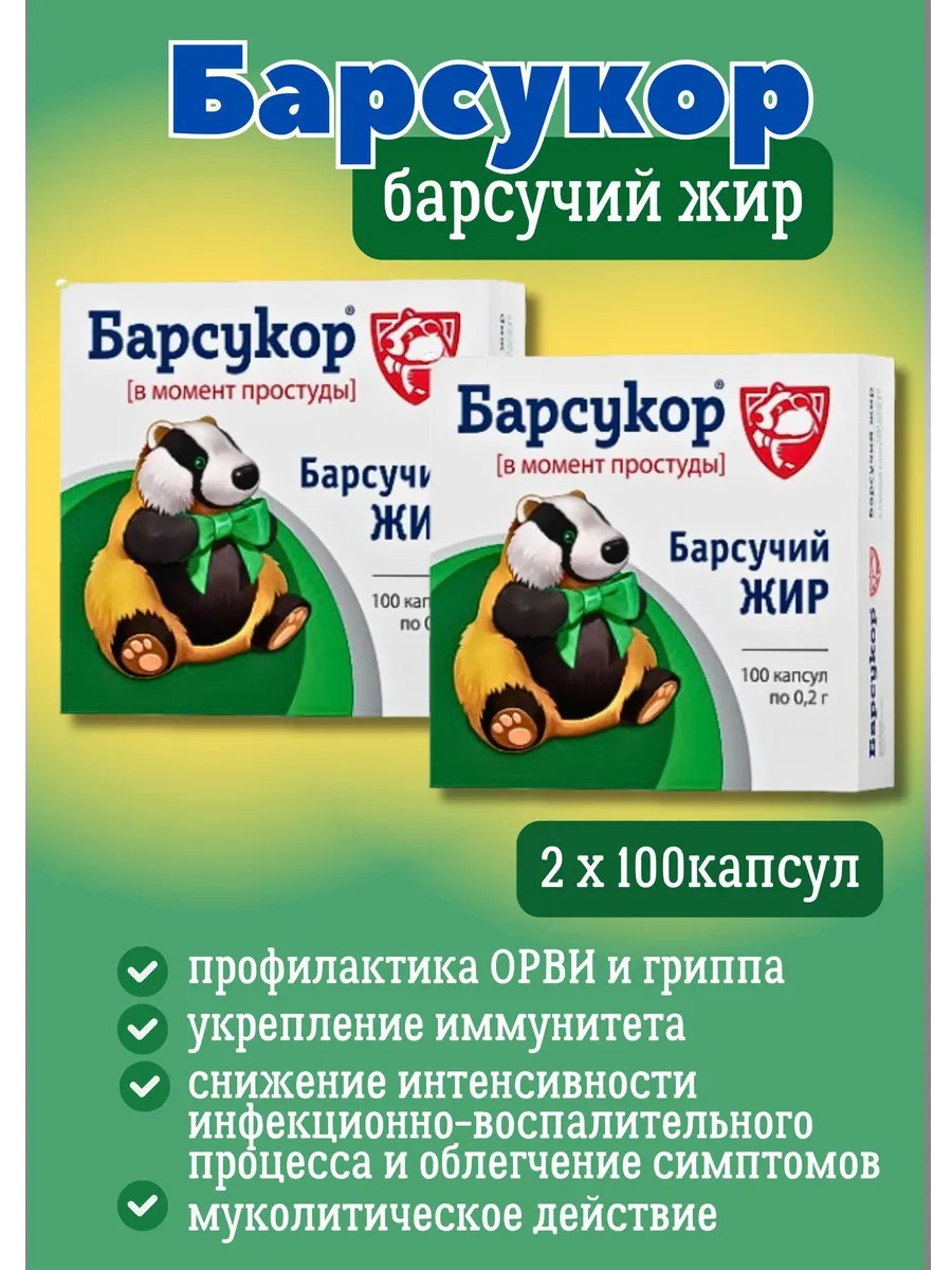 БАРСУКОР Барсучий жир капсулы при кашле 2уп по 100 шт