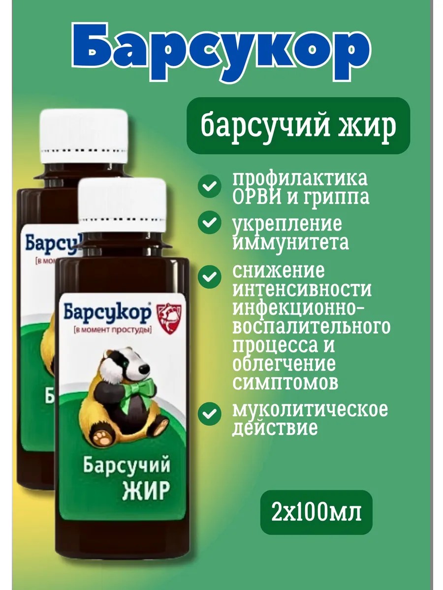 Барсучий жир для приема внутрь для профилактики ОРВИ и гриппа Барсукор.